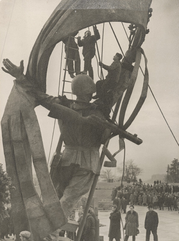 Slavín. Zdvíhanie sochy partizána. Zdroj: https://www.webumenia.sk/dielo/SVK:SNG.UP-DK_3979