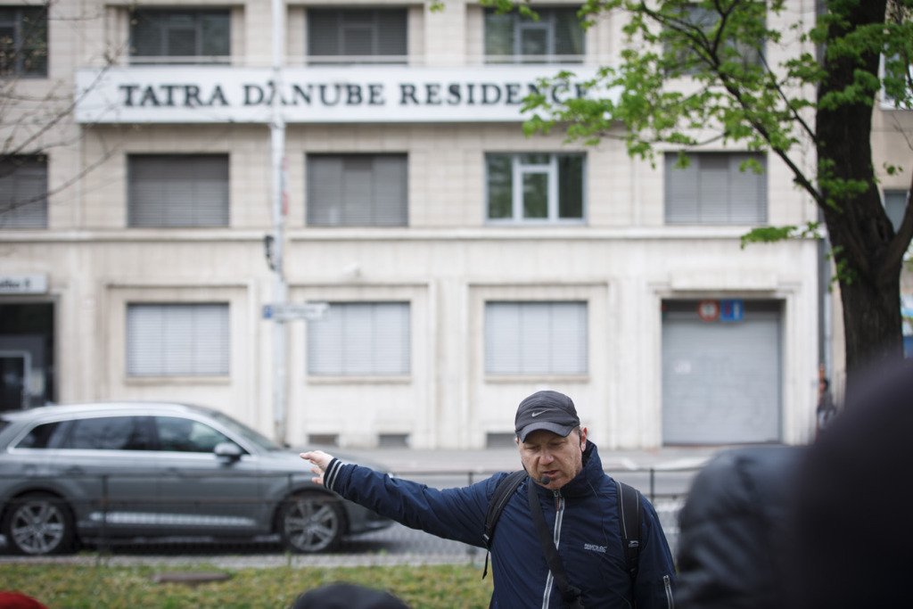 Vychádzkou sprevádzal člen OZ Bratislavské rožky Roman Delikát, ktorý návštevníkom priblížil aj, ktoré známe osobnosti politického a literárneho života popri svojej známejšej činnosti pracovali vo finančnej sfére a popri iných zaujímavých faktoch rozpovedal aj príbeh úspešnej rodinnej banky známeho prešporského rodu.