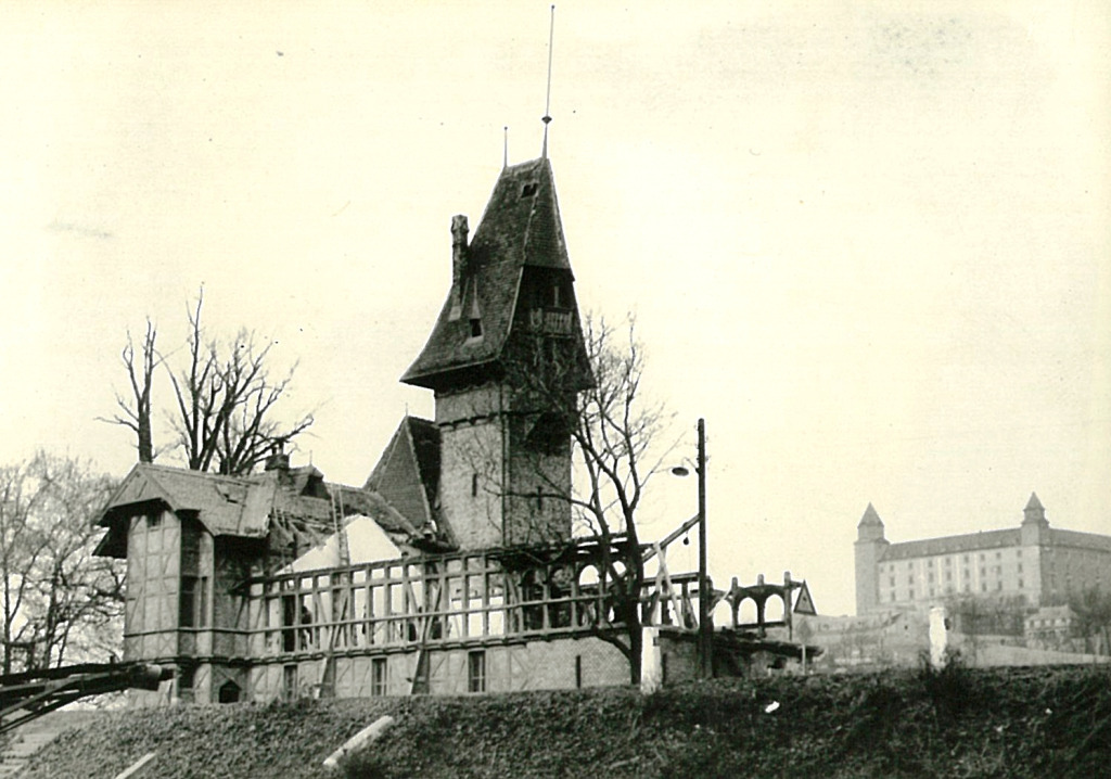 Spolkovú budovu zbúrali pri výstavbe Mosta SNP (1967 – 1972). Ochrancovia pamiatok zohľadnili jej historickú hodnotu, preto jednotlivé označené a očíslované kusy previezli na úschovu do skladových priestorov JRD v Rusovciach, odkiaľ v 2. polovici 80. rokov steny s dreveným obložením a ďalšie stavebné prvky pomaly rozkradli.