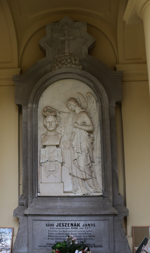 Barón Ján Jeszenák de Királyfia bol v rodine IV. s týmto menom. Neskorší martýr boja za slobodu sa narodil 22. januára 1800 v Prešporku (dnešnej Bratislave), kde rodina vlastnila hneď dva paláce: jeden na Michalskej ulici, druhý na Hlavnom námestí. Na formovanie myšlienkového sveta tohto aristokrata, študujúceho v rodnom meste právo a potom zveľaďujúceho svoje panstvo, vplývala okrem skúseností z ciest aj korešpondencia s grófom Istvánom Széchenyim, ktorý zohral nezmazateľnú úlohu pri budovaní moderného Uhorska. Ján Jeszenák dospel v opozičného politika na zasadnutiach Nitrianskej stolice, resp. na reformných snemoch v Prešporku. Vďaka dobrým vzťahom s predsedom vlády grófom Lajosom Batthyányim, ktorý bol vodcom opozície hornej tabule uhorského snemu v rokoch 1839 – 1840 a neskôr ho postihol rovnako smutný osud, ako aj vďaka svojmu angažovanému opozičnému postoju sa stal v apríli 1848 hlavným županom Nitrianskej stolice a v septembri toho istého roka vládnym komisárom s plnou mocou. Ako zástupca legitímnej vlády krajiny, bojujúcej za slobodu, viedol na zverenom území úspešné odvetné útoky proti vonkajším silám, až kým nepriateľská presila nenadobudla likvidačné rozmery. Po zložení zbraní pri Világoši padol najprv do zajatia, potom sa dostal pred vojenský súd, ktorý ho odsúdil na trest smrti obesením. Rozsudok bol vykonaný 10. októbra 1849. Jeho pozostatky uložili do hrobky kalvínskeho kostola na Kalvínskom námestí v Pešti. Na identitu zosnulého odkazoval len rodový erb. Po zmiernení prejavov absolutizmu a následnom rakúsko-uhorskom vyrovnaní využila jeho vdova grófka Alojzia Forgách amnestiu a v roku 1867 nechala previezť telesné pozostatky do Prešporka, aby mohli byť uložené na večný odpočinok v rodinnej hrobke na evanjelickom cintoríne pri Kozej bráne. Kým si však mohla dôstojne uctiť pamiatku svojho zosnulého manžela, ubehlo veľa času. Stalo sa tak až 10. októbra 1869, pri príležitosti dvadsiateho výročia jeho úmrtia. Náhrobok vytvoril Karol Alexy, ktorý sa narodil 8. februára 1816 v Poprade a po prerušení štúdií v Kežmarku odišiel ako dospievajúci mladík do Viedne, kde sa naňho usmialo šťastie a fortiele sochárskeho umenia si osvojoval na tunajšej Akadémii výtvarných umení aj pod vedením Josefa Kliebera. Vo Viedni úspešne predstavil zmenšenú verziu jazdeckej sochy kráľovnej Viktórie a tvoril aj stojace bronzové figúrky vojvodcov ríše. V roku 1844 zvečnil kráľa Mateja Korvína s úmyslom vytvoriť aj jeho pamätník. Sadrový odliatok sochy priviezol do Prešporka a predstavil ho v uhorskom sneme – priamo pred vínovočervenou drapériou, ktorá sa nachádzala za predsedníckou tribúnou. Veril, že jeho nápad sa stretne s podporou prítomných. Namiesto toho z celého projektu vzišli iba maloformátové bronzové exempláre odliate z predlohy. Alexy navštívil Prešporok aj pri príležitosti uhorského snemu v roku 1847, keď vytvoril bustu arcibiskupa Józsefa Lonovicsa. V čase, keď ho oslovila vdova po Jánovi Jeszenákovi, bol už Karol Alexy etablovaný sochár a na zákazke pracoval s plným nasadením.