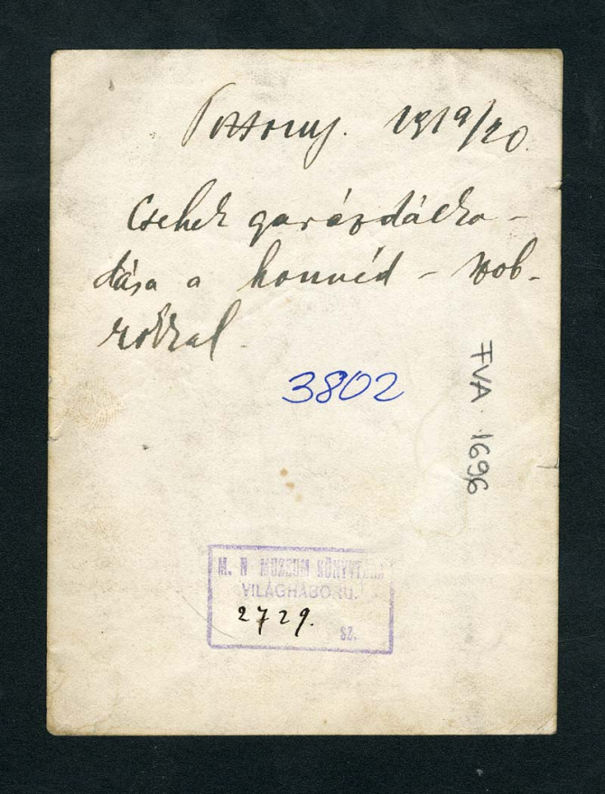 Národná Széchenyiho knižnica v Budapešti nedávno doručila OZ Bratislavské rožky fotografiu, na zadnej strane ktorej je čitateľný nasledovný text: „Vyčíňanie Čechov pri sochách honvédov.“ Na základe textu a zachytených sôch sa podarilo určiť, že záber dokumentoval – žiaľ, už len v poškodenom stave – dve Rigeleho sochy honvédov, ktoré boli osadené pri vchode na armádne veliteľstvo v roku 1913.