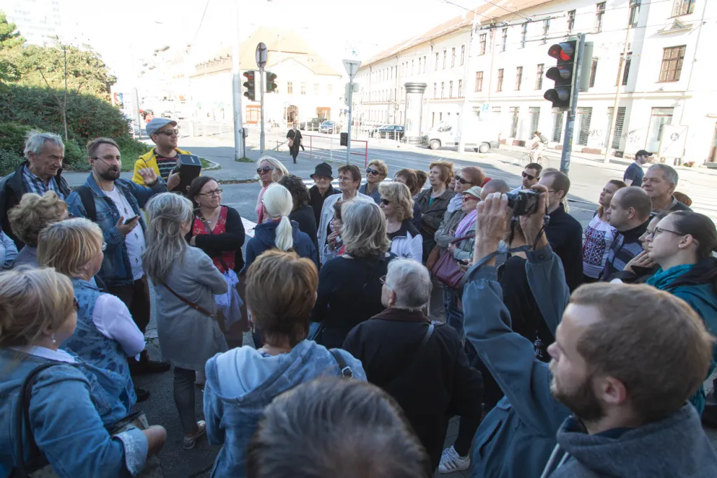 Naším sprievodcom bol tentoraz podpredseda OZ Bratislavské rožky Ján Vyhnánek, vďaka ktorému sme mohli aspoň na chvíľu zabudnúť na problémy spájajúce sa s touto ulicou. Prostredníctvom výsledkov svojho najnovšieho výskumu a zaujímavého výkladu nám toto miesto predstavil v celkom inom svetle.