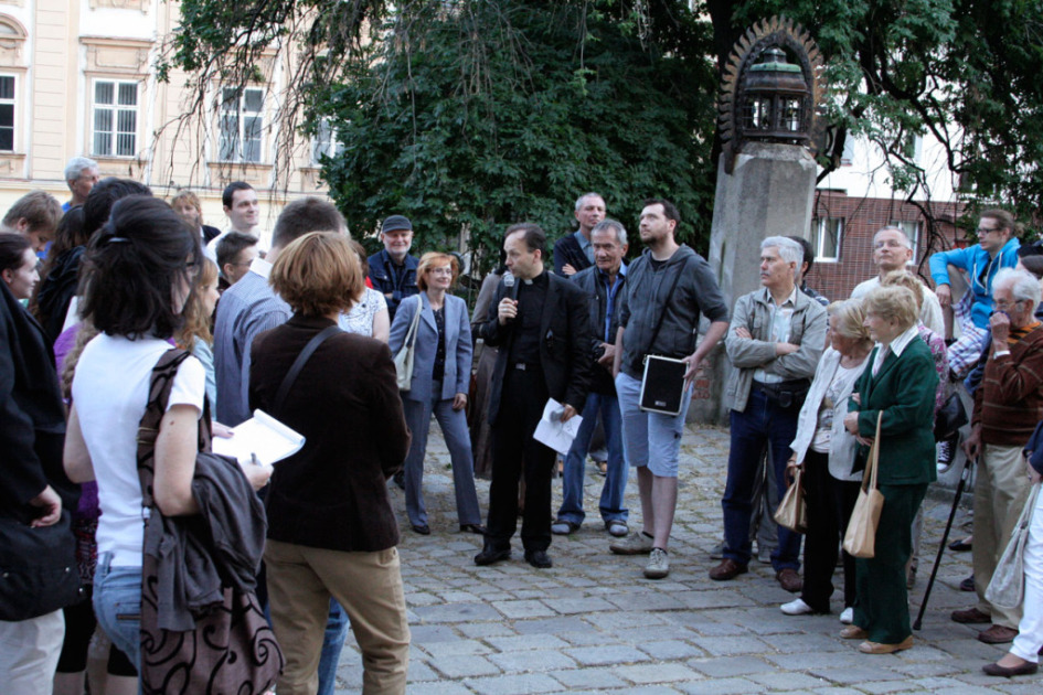 V nedeľu podvečer (15.6.2014) sme sa zhromaždili pred bratislavskou pýchou - Dómom sv. Martina a pod vedením prof. Haľka sa vydali objavovať zaujímavosti jeho exteriéru.