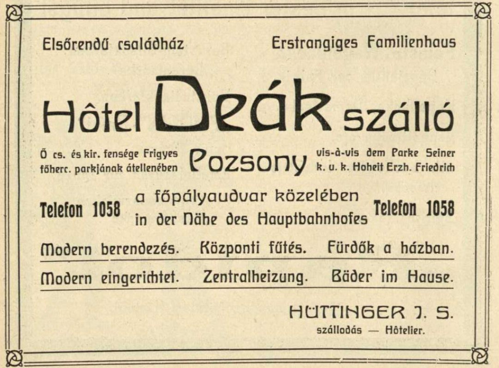 Dom na rohu Lermontovovej a Štefánikovej ulice je v súčasnosti známy ako sídlo obvodného oddelenia staromestskej polície s hrubou vrstvou omietky. Tí, ktorí sa zaujímajú o históriu Bratislavy, vedia, že ide o bývalý hotel Deák a že celý priestor má zaujímavý príbeh...