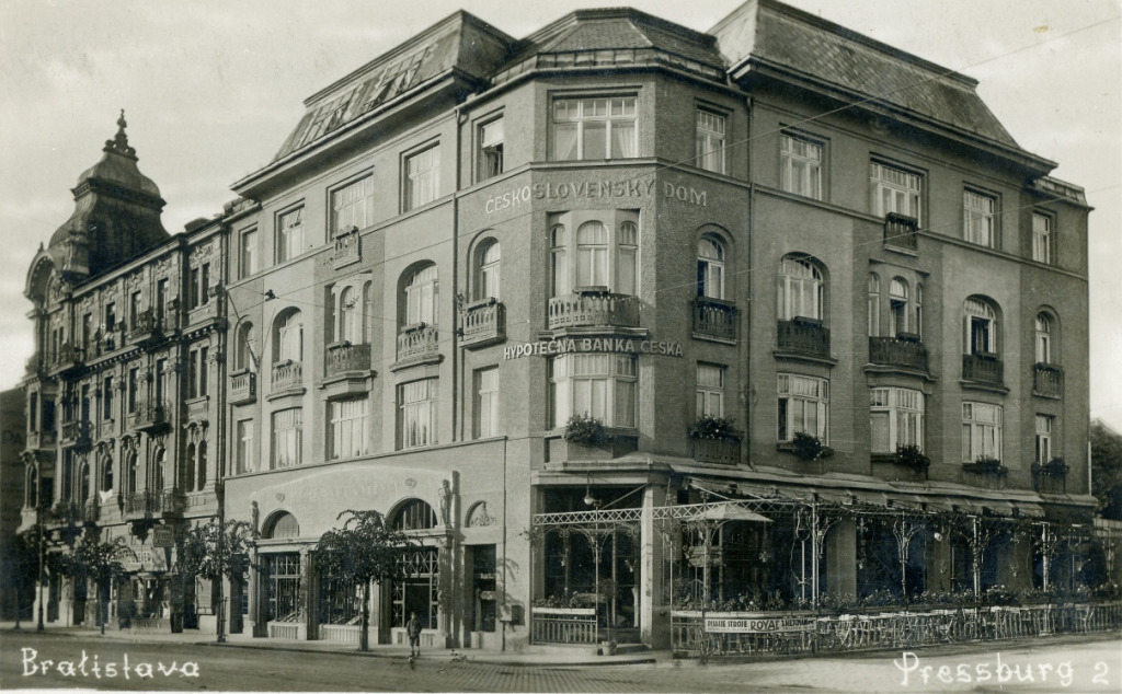 V roku 1923 spoločnosť Československý dom predala budovu za 2 400 000 korún Českej Hypotečnej banke. Predaj mal pomôcť sanovať finančnú situáciu spoločnosti, ktorá sa vinou zlého hospodárenia ocitla v dlhoch (dlhodobo to však nepomohlo, spoločnosť bola v roku 1928 daná do likvidácie). Banka síce plánovala na prízemí ponechať kaviareň, ale súčasne zrušiť hotel a v jeho priestoroch zriadiť administratívne priestory (1. poschodie) a úradnícke byty (vyššie poschodia). Plány na zrušenie hotela verejnosť prijala s nevôľou, podľa tlače išlo „o neodpustiteľný hriech banky, ktorá môže pre úradníkov postaviť nový dom, keďže je v Bratislave dostatok pekných stavebných miest. (...) Banka však nielen, že nestavá, ale pripravuje čs. úradníctvo v Bratislave i o jedon slušný hotel, čo je v dnešnej bytovej krízi naprosto neomluviteľné.“ Proti zrušeniu protestoval aj cudzinecký zväz, poukazujúc na zákonné ustanovenie, v zmysle ktorého počas bytovej krízy nesmeli byť rušené hotely. Pod tlakom verejnosti napokon banka ustúpila a hotel ponechala v prevádzke, pravda, v zmenšených priestoroch. Podľa správy bankového riaditeľa J. Pátka boli realizované „potrebné adaptácie so všemožným zreteľom na zachovanie väčšej časti hotelu i kaviarne. Spravená bola moderná banková výzdoba z vonku, s výkladnými skriňami a bezpečnostnými opatreniami, dvorana pokladná a účtarenský, podzemný trezor (pancierové sklepenie), ktorý svojím rozsahom a usporiadaním je ojedinelým v Bratislave, zariadené potrebné miestnosti kancelárske.“ Banková filiálka bola otvorená 7. marca 1924 pri príležitosti narodenín prezidenta T. G. Masaryka. Zrejme počas týchto adaptačných prác zmizla pod vrstvou omietky aj nápaditá výmaľba fasády (nemožno však vylúčiť ani jej skoršie prekrytie po zriadení hotela Československý dom). Štefánikova ulica a s ňou aj celá Bratislava tak prišla o vzácny exteriérový prejav viedenskej secesie.