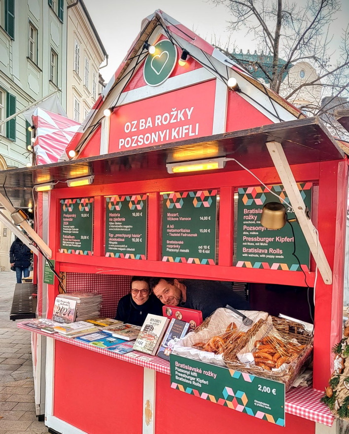 Naše občianske združenie už tradične má svoj stánok na vianočných trhoch na Hlavnom námestí v Bratislave. Okrem lahodných makových a orechových bratislavských rožkov ponúkame aj publikácie nášho vydavateľstva.