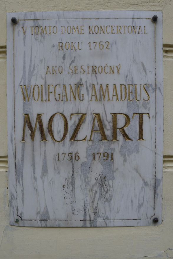 Na Pálffyho paláci na Ventúrskej 10 sa nachádza pamätná tabuľa z roku 1959 (autori Ján Rybárik, Ervín Staník, Ivan Strelko). Tento palác patril Leopoldovi (II.) Pálffymu (1716 – 1773), generálovi delostrelectva. Ako možné miesto Mozartovho koncertovania však oveľa pravdepodobnejšie prichádza do úvahy Pálffyho palác na Zámockej ul., príp. jeho záhradná sála.