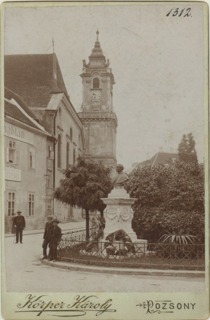 V júni 1902 Tivadar Ortvay v prešporskom denníku Nyugatmagyarországi Híradó (Západouhorský spravodaj), vychádzajúcom v maďarskom jazyku, zverejnil článok, v ktorom čitateľov informuje, že on osobne s prešporským starostom, sochárom Alojzom Stróblom a ministerským komisárom Gyulom Forsterom, určili na Františkánskom námestí miesto, na ktorom by mala bronzová socha stáť.