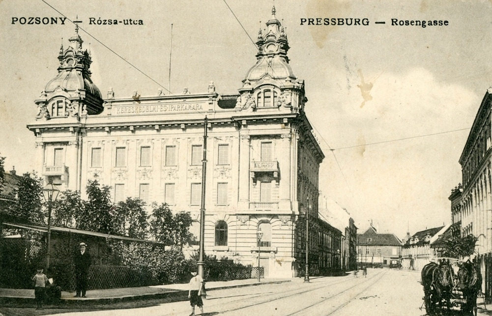 Na východnom konci námestia stál od konca 19. storočia dvojposchodový Berendyho dom. Jeho majiteľ Johann Berendy v ňom od polovice 19. storočia prevádzkoval vaňové a parné kúpele. Okrem nich ponúkal aj záhadne znejúci elektrický a magnetický kúpeľ. Dom kvôli problémom so statikou v roku 1901 zbúrali a na jeho mieste podľa projektu Jozefa Huberta postavili v rokoch 1903 – 04 prednedávnom rekonštruovanú Obchodnú a priemyselnú komoru.
