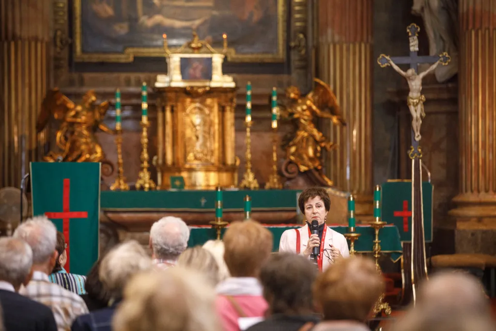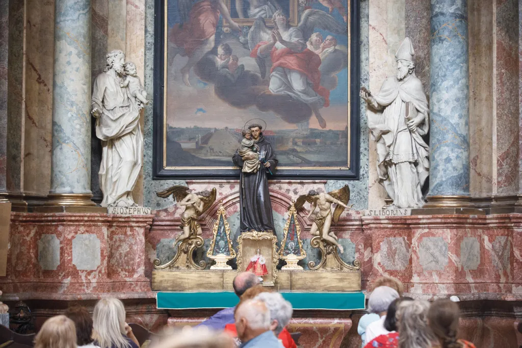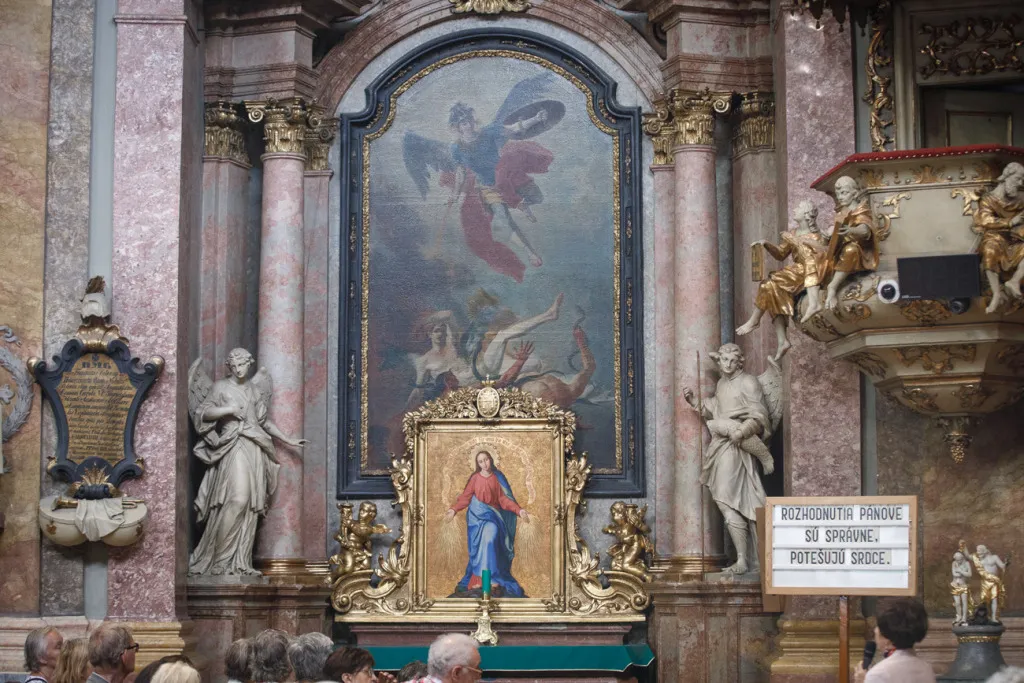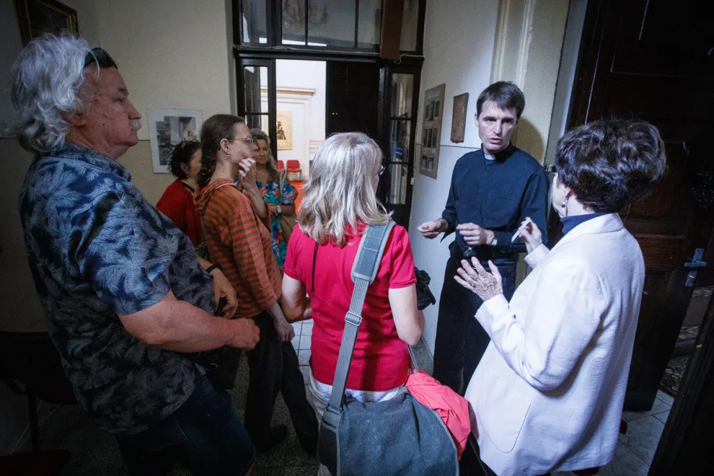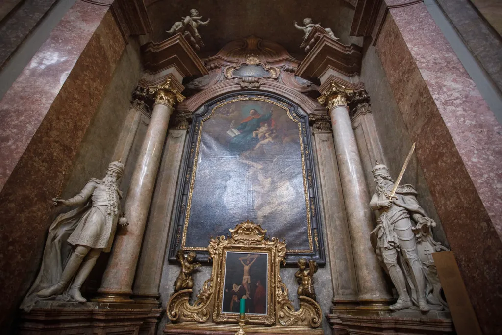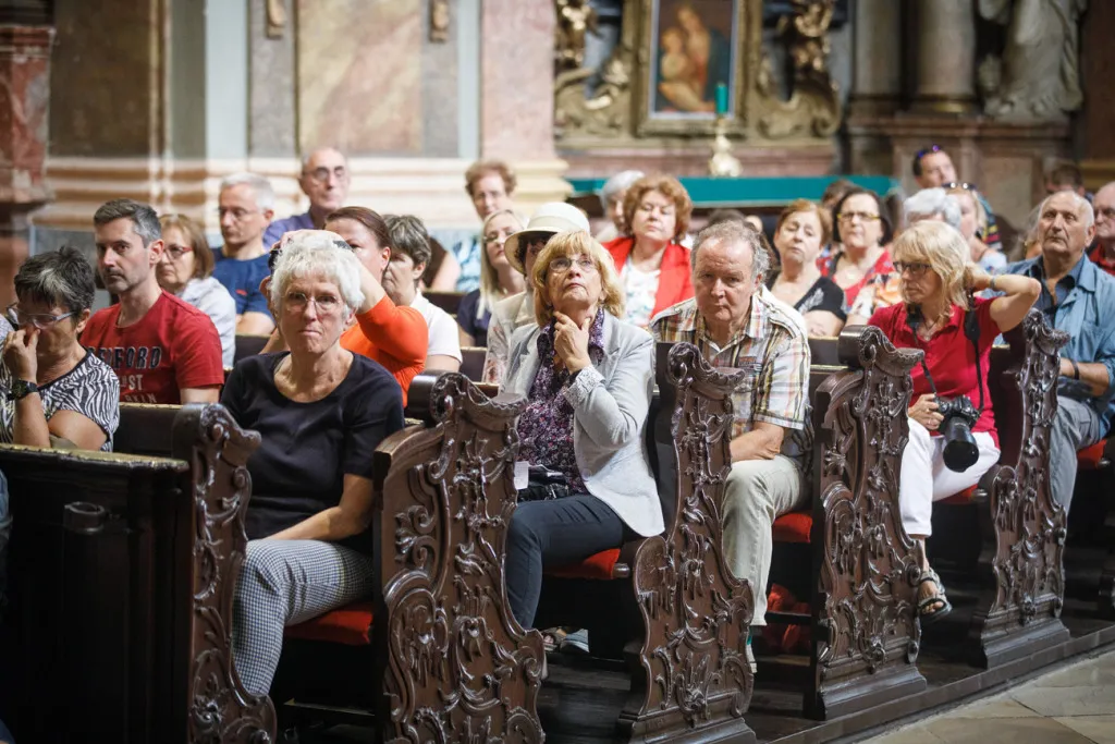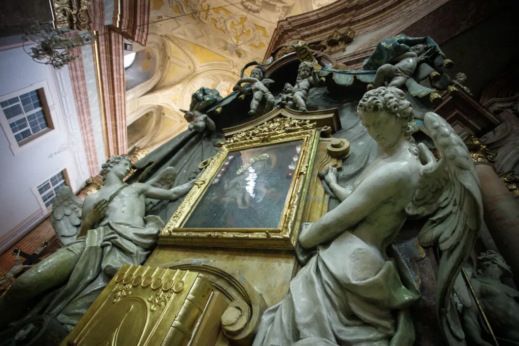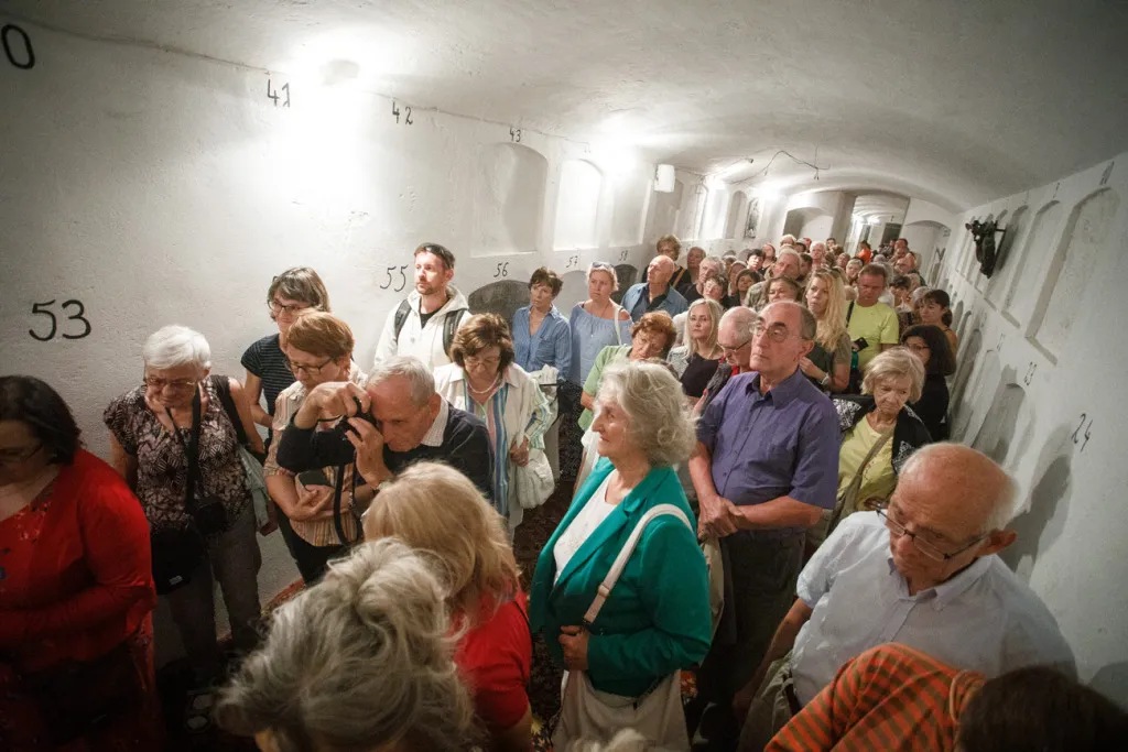 O to, aby celá prehliadka bola tip-top, sa nad rámec bežnej normy zaslúžila naša stálica Eva Trúchla. Spolu s ňou sme sa ponorili do 300-ročnej histórie svätostánku, kochali sme sa jeho nádhernou výzdobou (monumentálne maľby Bibienu stoja za to!). No a napokon sme sa vďaka veľmi ústretovému pánovi kaplánovi dostali aj do krýpt kostola, ktoré mnohí z nás videli vôbec po prvý raz. Bol to zážitok!