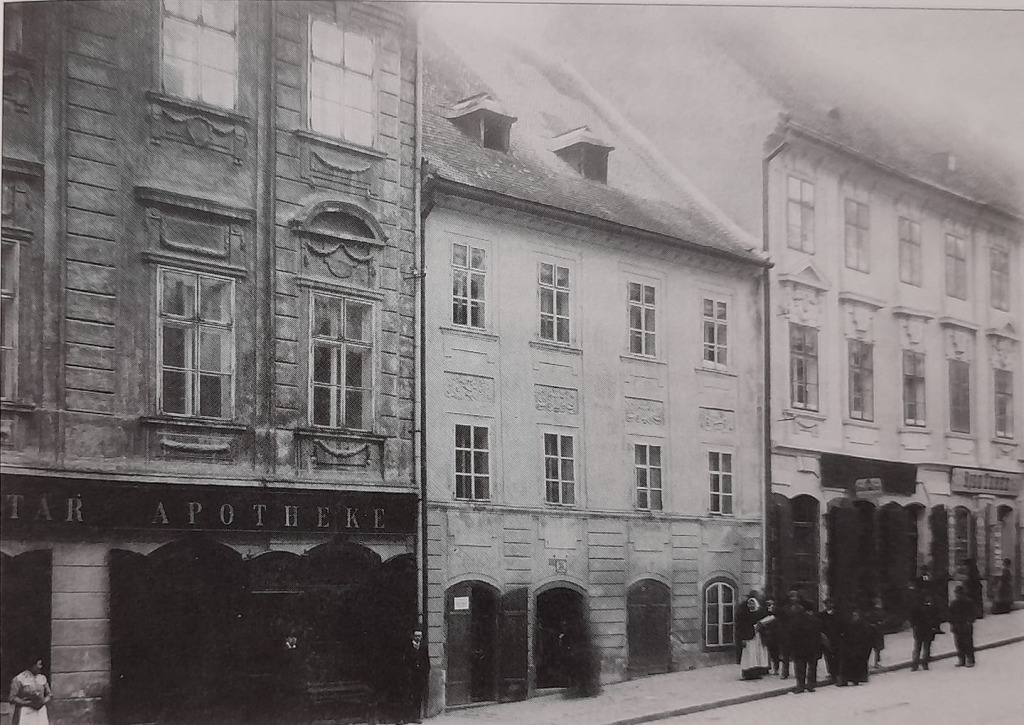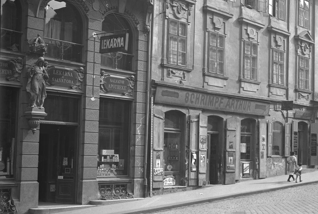 Lekáreň Salvator v roku 1928. Výrez z fotografie Josefa Hofera. Zdroj: pammap.sk, Archív mesta Bratislavy