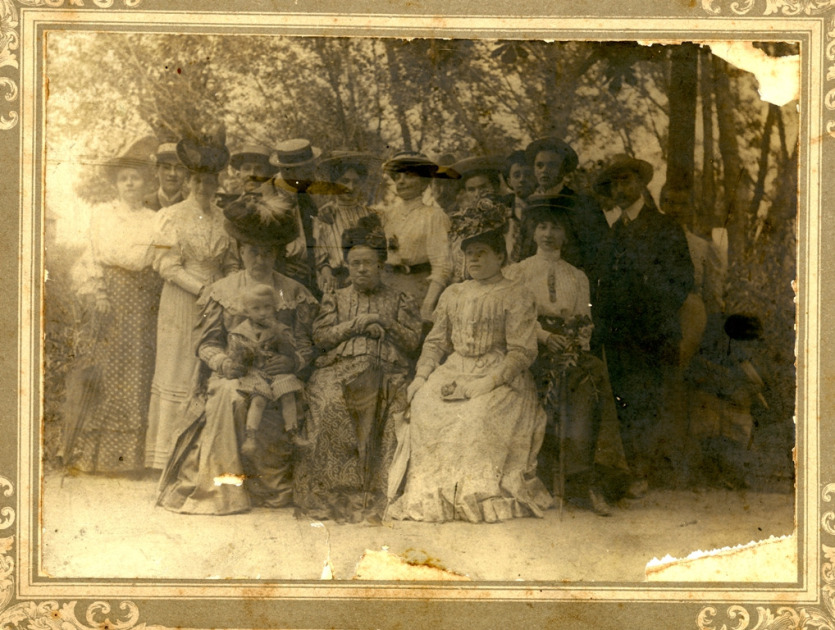 Najstaršia rodinná fotografia. Zľava sediaci: Charlotte Ruttner (rod. Schweighofer), stará mama Rojtschek (st.), Marie Schweighofer (rod. Rojtschek), Anna Schweighofer, vedľa nej stojí pán Dadlanek. Stojaci v prvom rade zľava: moja stará mama Anna Schweighofer (rod. Éder), Marie Schweighofer, Oszkár Ruttner (st.), jeho manželka Karoline (rod. Kuszák). V druhom rade tretí: môj starý otec August Schweighofer ml. Ostatných nepoznám.