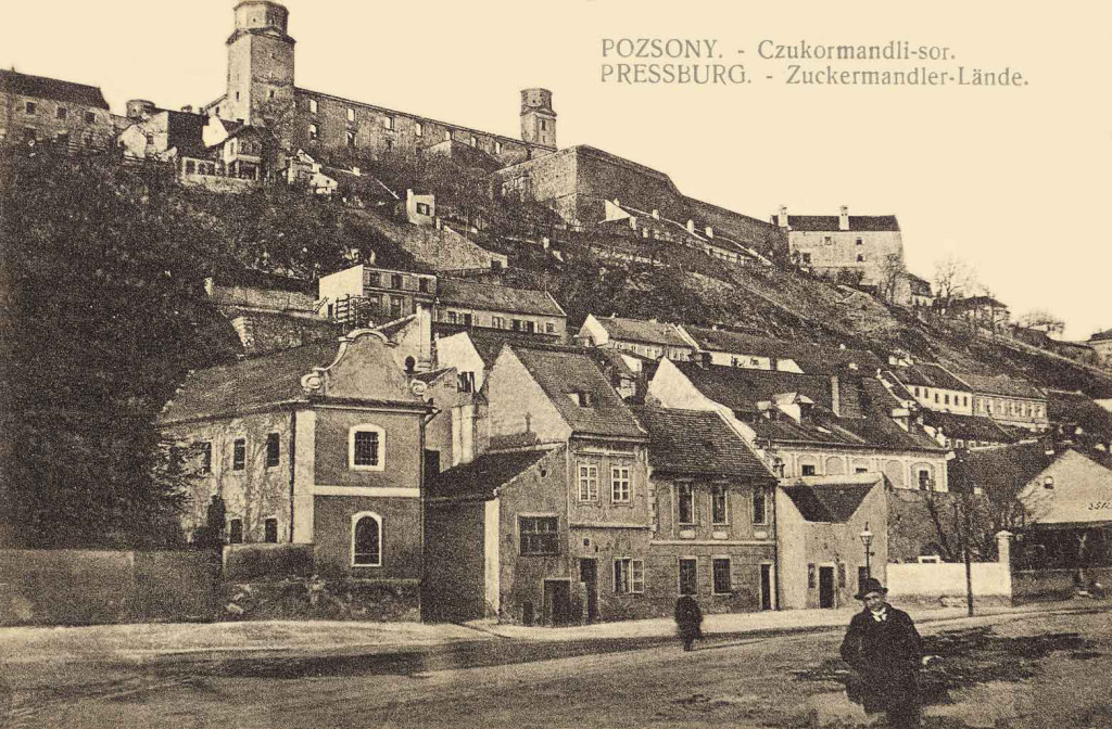 Die Wege von Touristen und Bachelors sind auch in Pressburg berechenbar. Ich kann ihnen leicht ausweichen. Am Ende der Herrengasse oder Lange Gasse (Panská), der Pressburger Meile des Adels mit den in der mariatheresianischen Zeit erbauten Palais der Pálffy, Esterházy, Csáky und Keglevich (Keglević), sind sie weg. Das Stimmenwirrwarr weicht einer anderen, noch vertrauteren Geräuschkulisse, dem Lärm des Verkehrs, der von der Lände und der architektonisch beeindruckenden SNP-Brücke heraufzieht auf den Domplatz (Rudnayovo námestie) und den Fischplatz (Rybné námestie), wo einst die große Pressburger Synagoge stand. Sie wurde nicht in den dunklen Jahren des slowakischen Faschismus niedergerissen, sondern erst im Zuge der Stadtregulierung in den späteren Jahren des Kommunismus. Die Wunde, die damals der Stadt zugefügt wurde, klafft noch immer und sie schmerzt mich jedes Mal, wenn ich aus der Inneren Stadt auf den Schlossberg spaziere. Seit einigen Jahren erinnert eine interessante Ausstellung am Platz an die Synagoge und ihre Geschichte. Nicht fehlen darf dabei das auf dem Platz 1918 aufgenommene Foto, dass das letzte ungarische Königspaar Karl und Zita und den sie segnenden Oberrabbiner Samuel Funk zeigt.