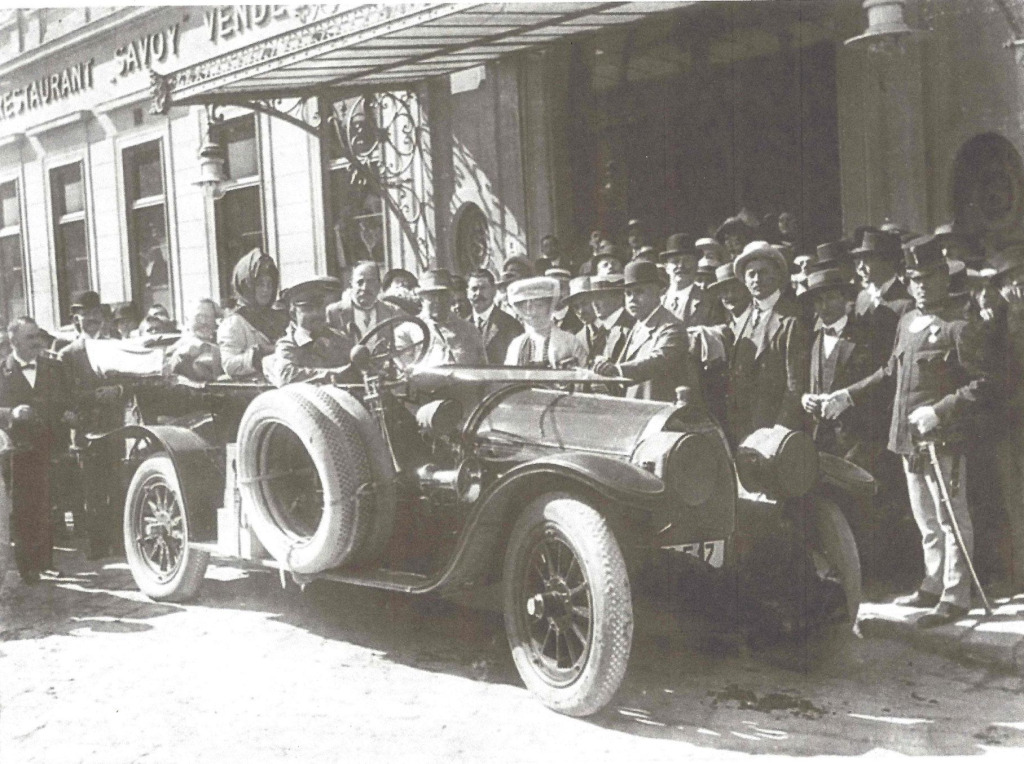 Thomas Alva Edison mit Familie im Automobil mit Chauffeur beim Hotelempfang. Quelle: Archiv der Familie Lippert