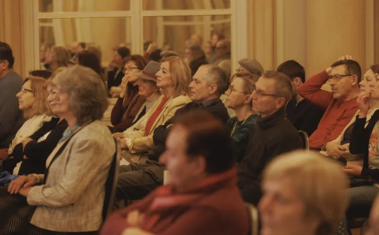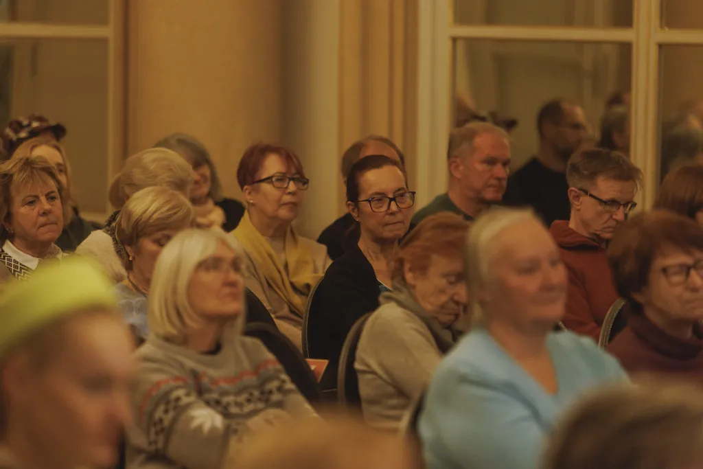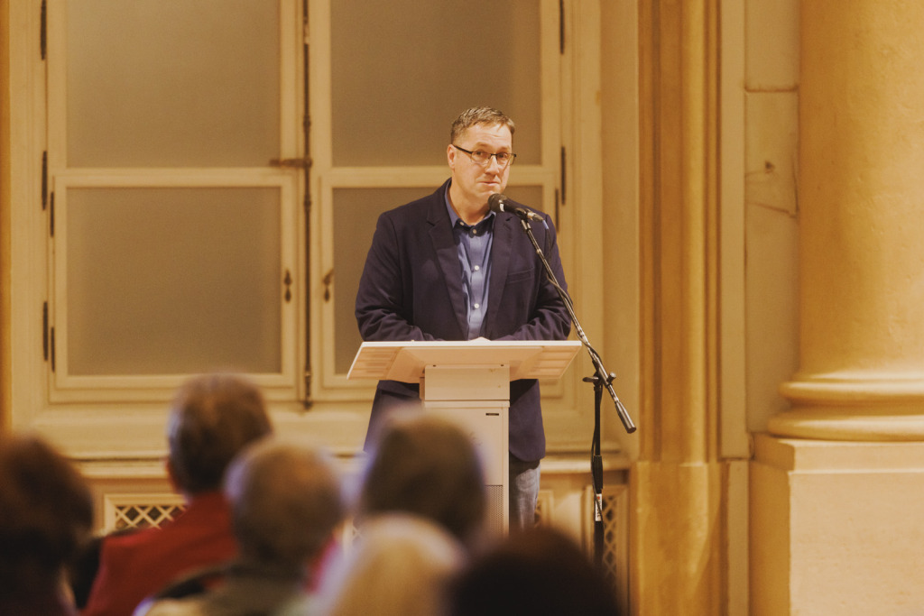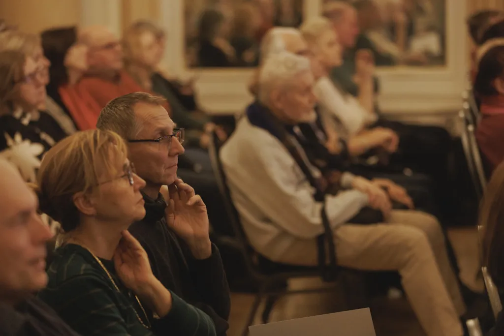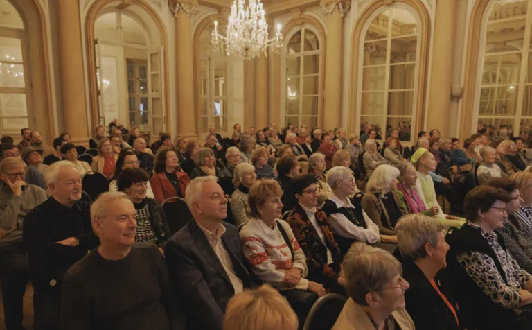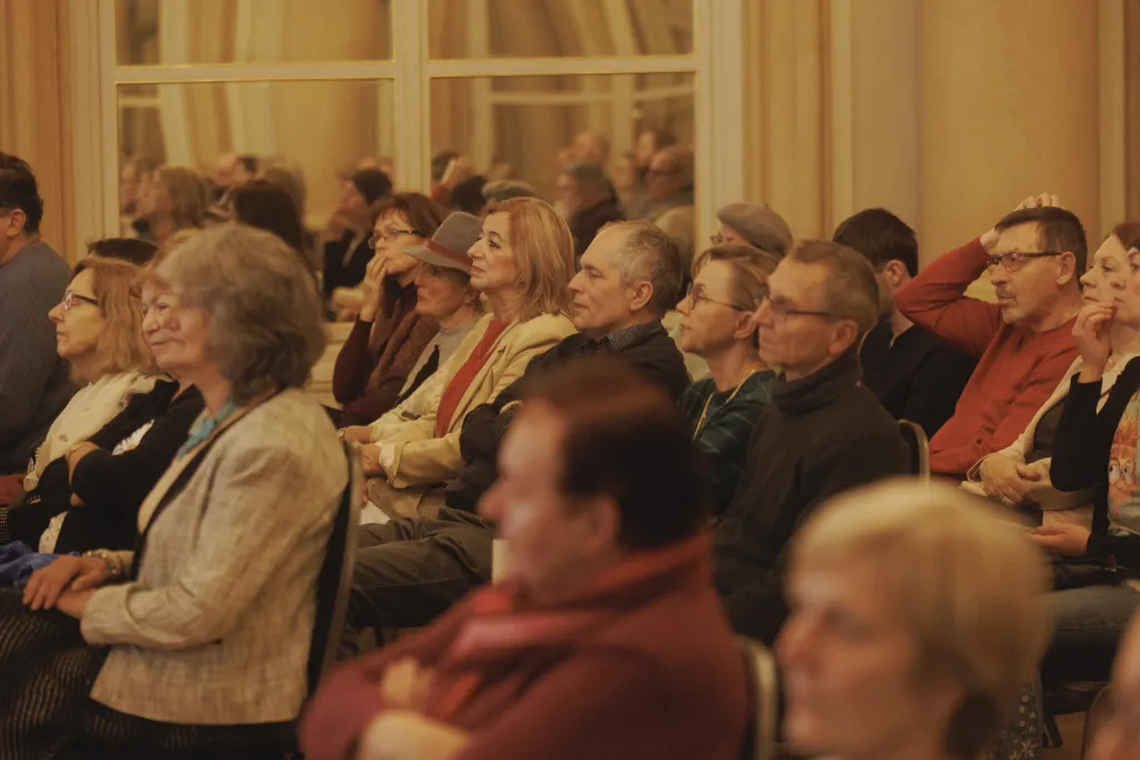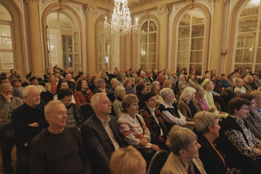 Moderátorom večera bol opäť podpredseda združenia Arpád Korpás, ktorý privítal diváčky a divákov, ktorí úplne zaplnili elegantnú sálu Zrkadlovej siene Primaciálneho paláca.