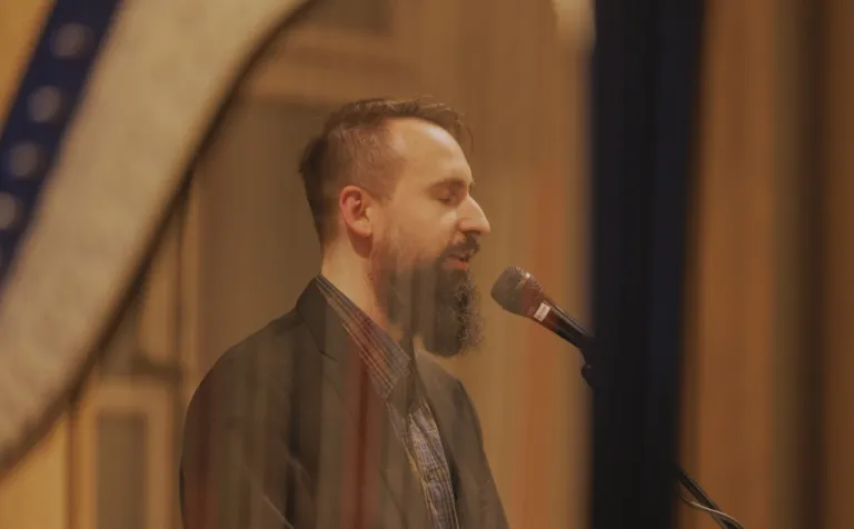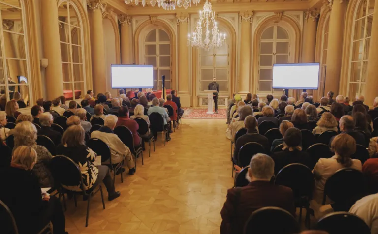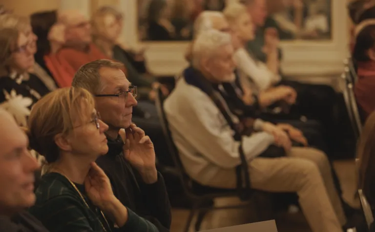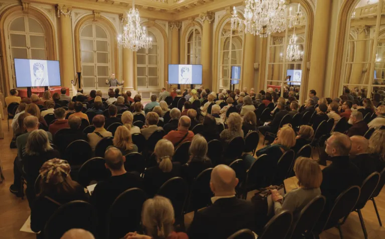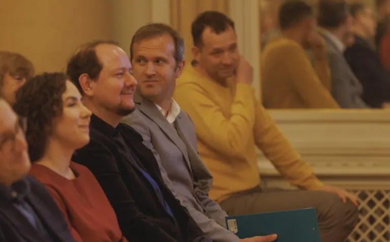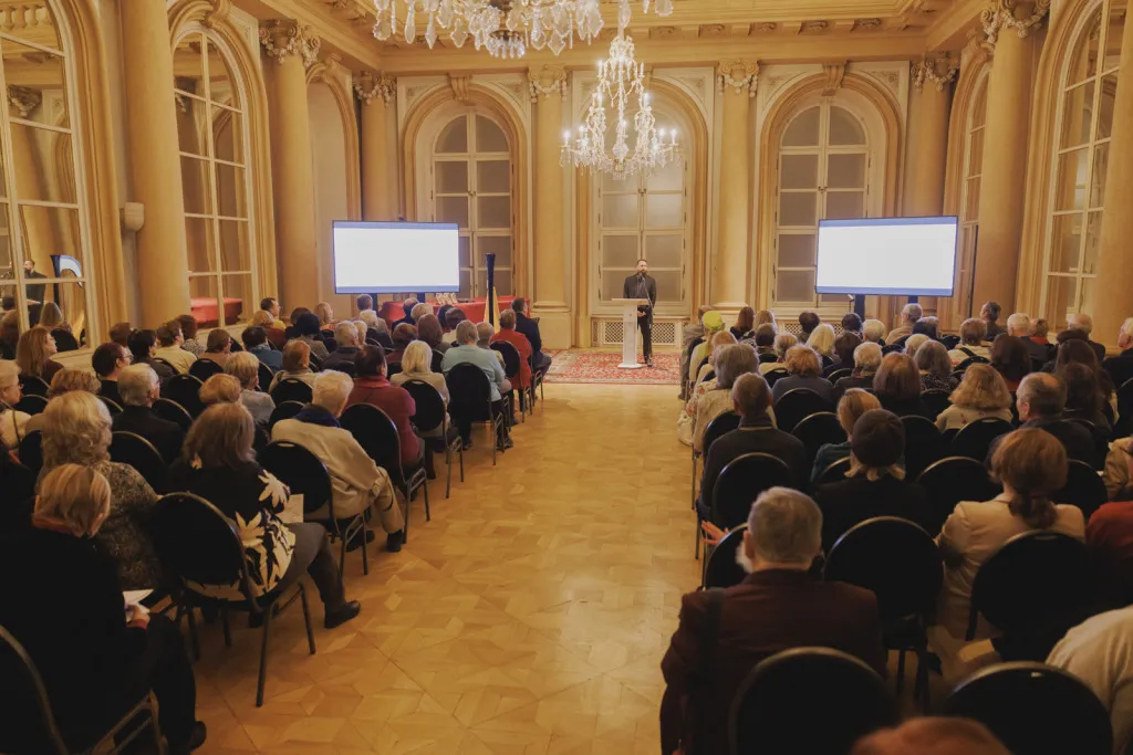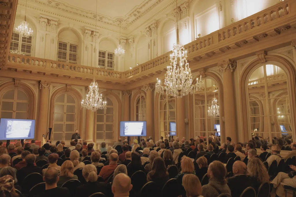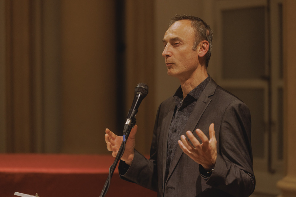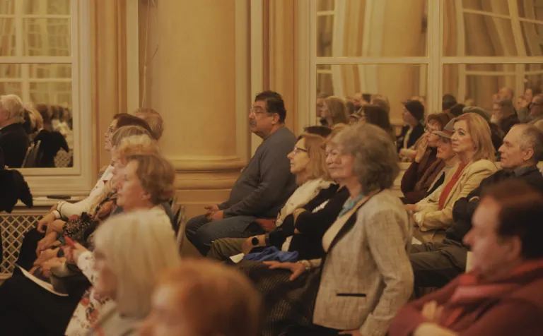Moderátorom večera bol opäť podpredseda združenia Arpád Korpás, ktorý privítal diváčky a divákov, ktorí úplne zaplnili elegantnú sálu Zrkadlovej siene Primaciálneho paláca.