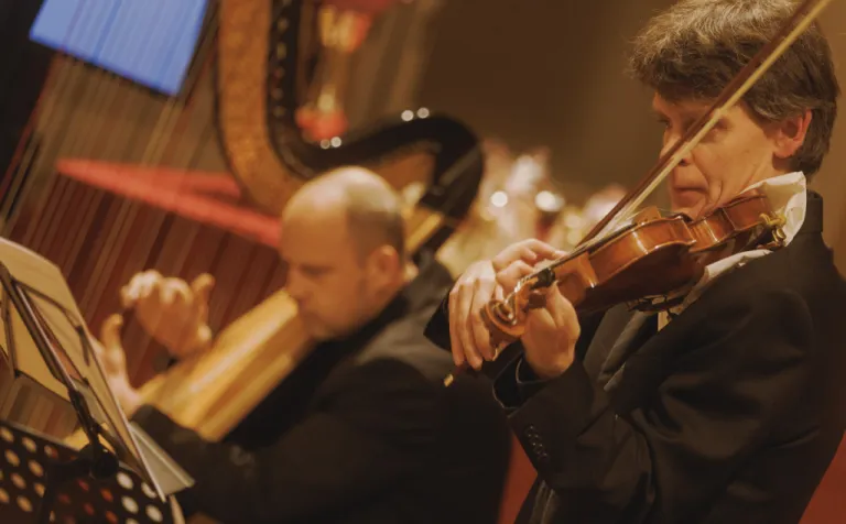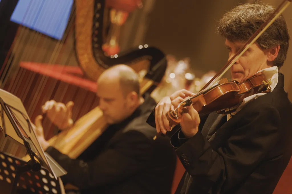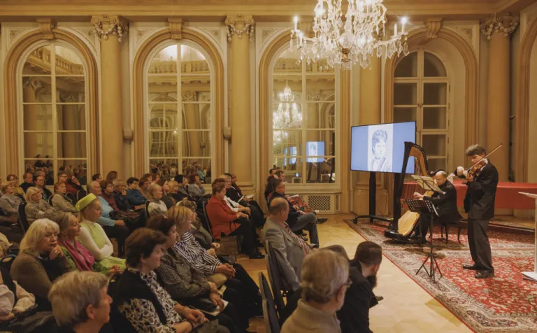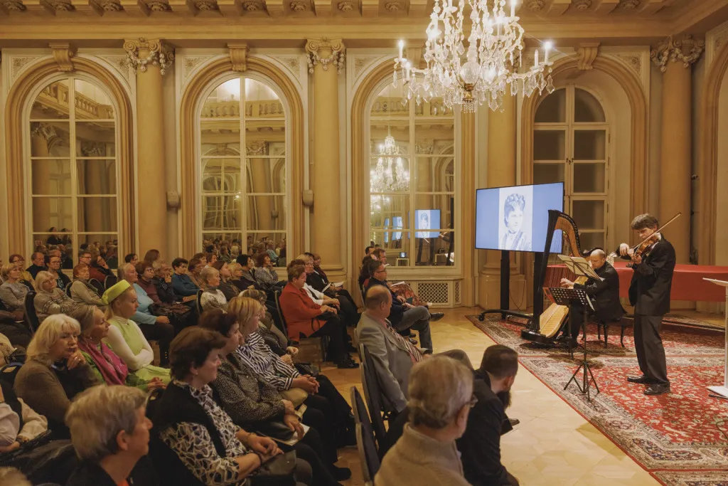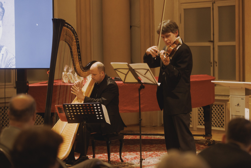 Hudobný sprievod obstarali harfista Ladislav Papp a huslista Tomáš Vinklát, ktorí v troch číslach (o. i. v Adagie Z. Kodálya) nadchli prítomných. Svojím výkonom pripomenuli množstvo koncertov slávnych hudobníkov, ktoré sa v Zrkadlovej sieni od jej otvorenia v roku 1780 odohrali.
