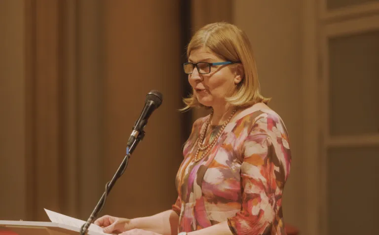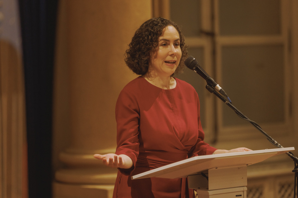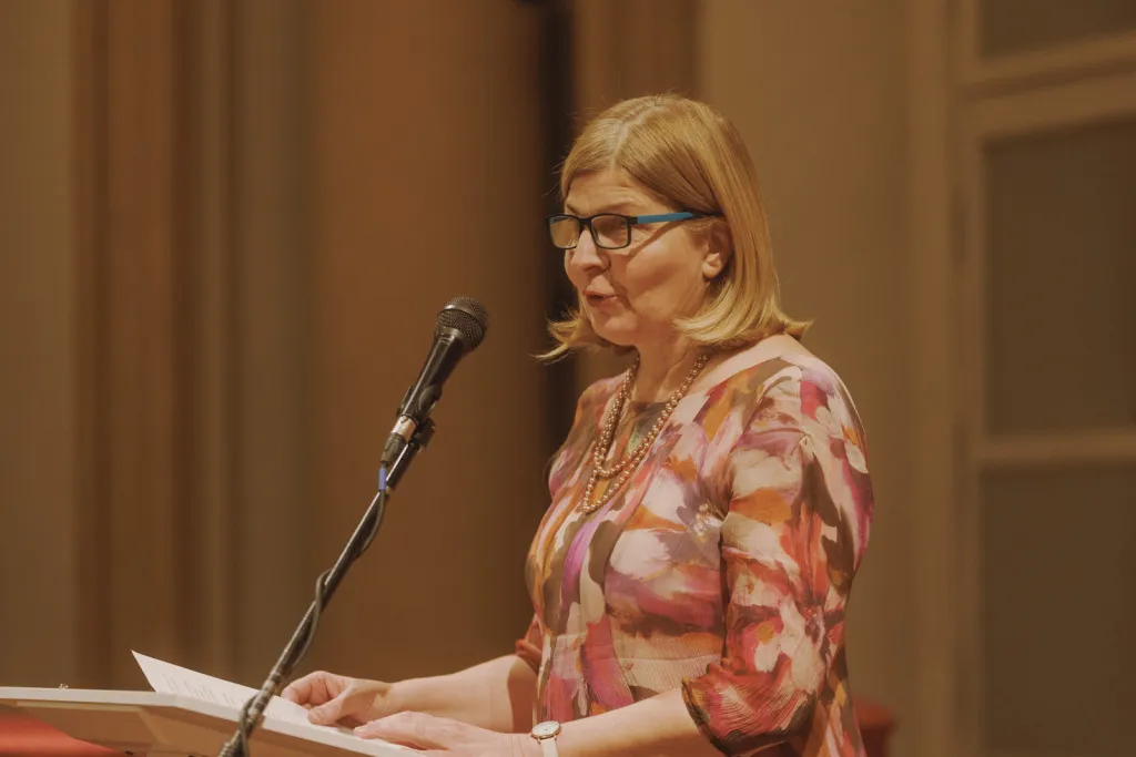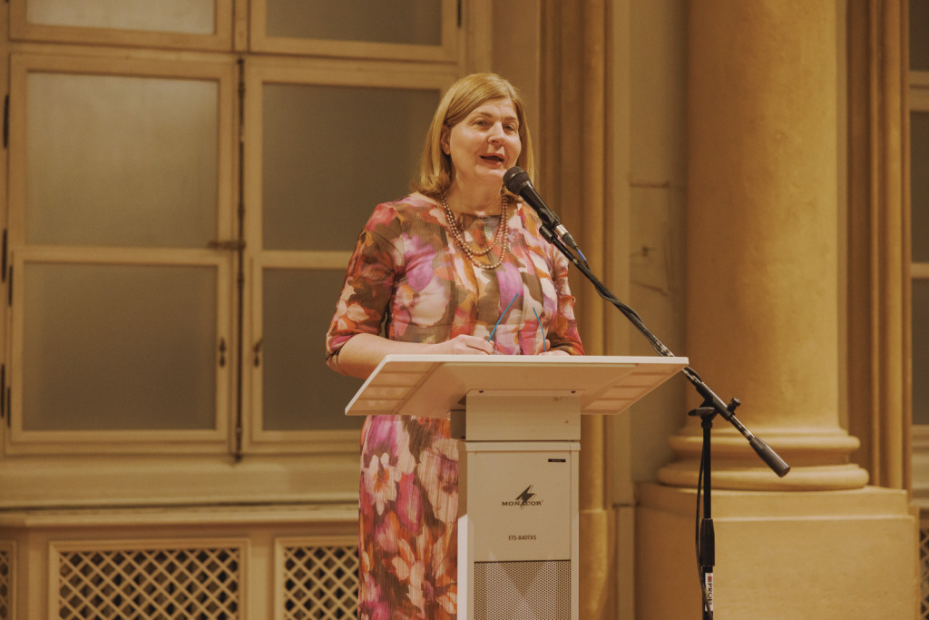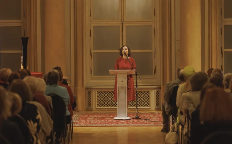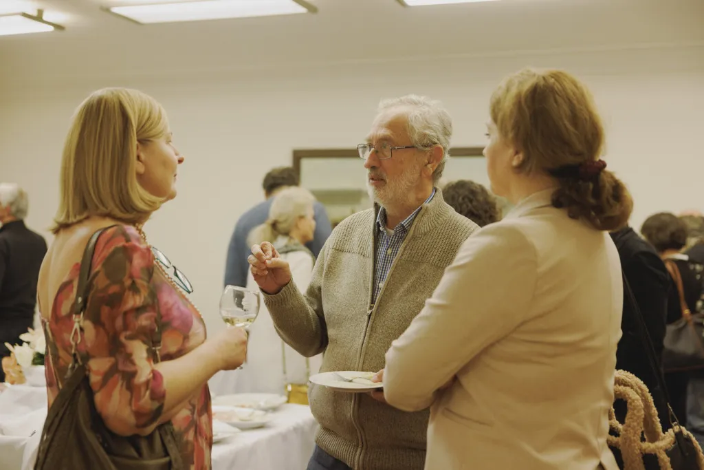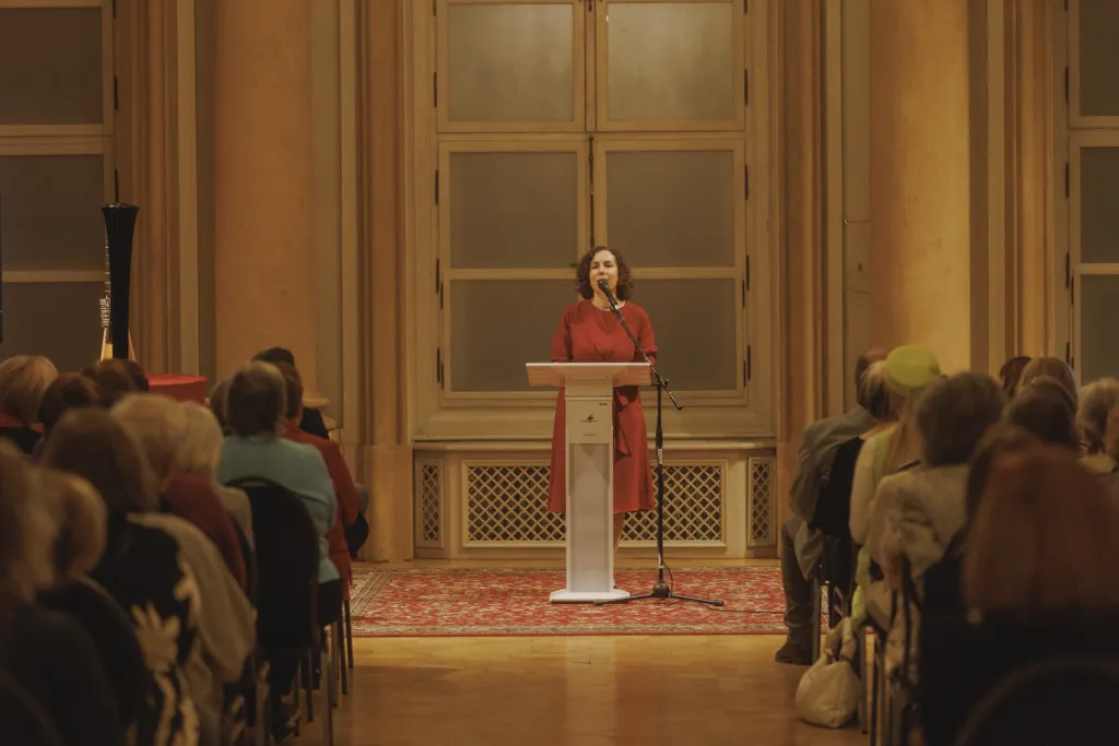Na podujatí predniesla príhovor aj Lucia Molnár Satinská, ktorá o svojej rodine porozprávala v prvom dieli nášho úspešného albumu „My sme starí Prešporáci“. Zablahoželala nášmu združeniu a ocenila jeho prácu vo viacjazyčnej komunite milovníkov dejín Bratislavy. Budúcnosť podľa nej spočíva v odovzdávaní pamäti mesta a medzigeneračnej spolupráci.