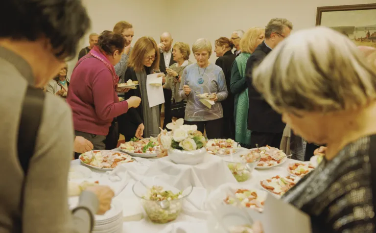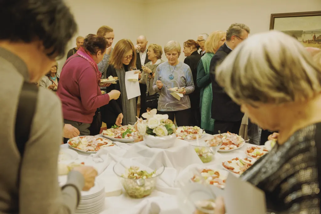 Na záver vydareného podujatia nasledovala recepcia – tradične sme ponúkali pravé orechové a makové bratislavské rožky. Stretli sa tu priatelia, známi i neznámi, ktorých spája to, že majú radi naše mesto Bratislava - Prešporok, Pressburg a Pozsony. OZ BArožky Foto: Braňo Bibel