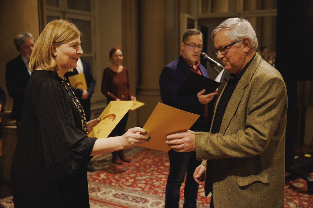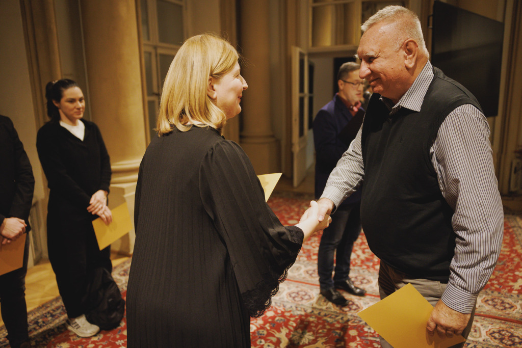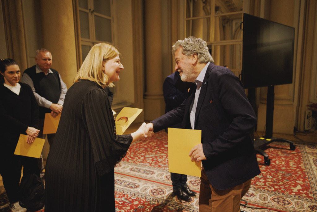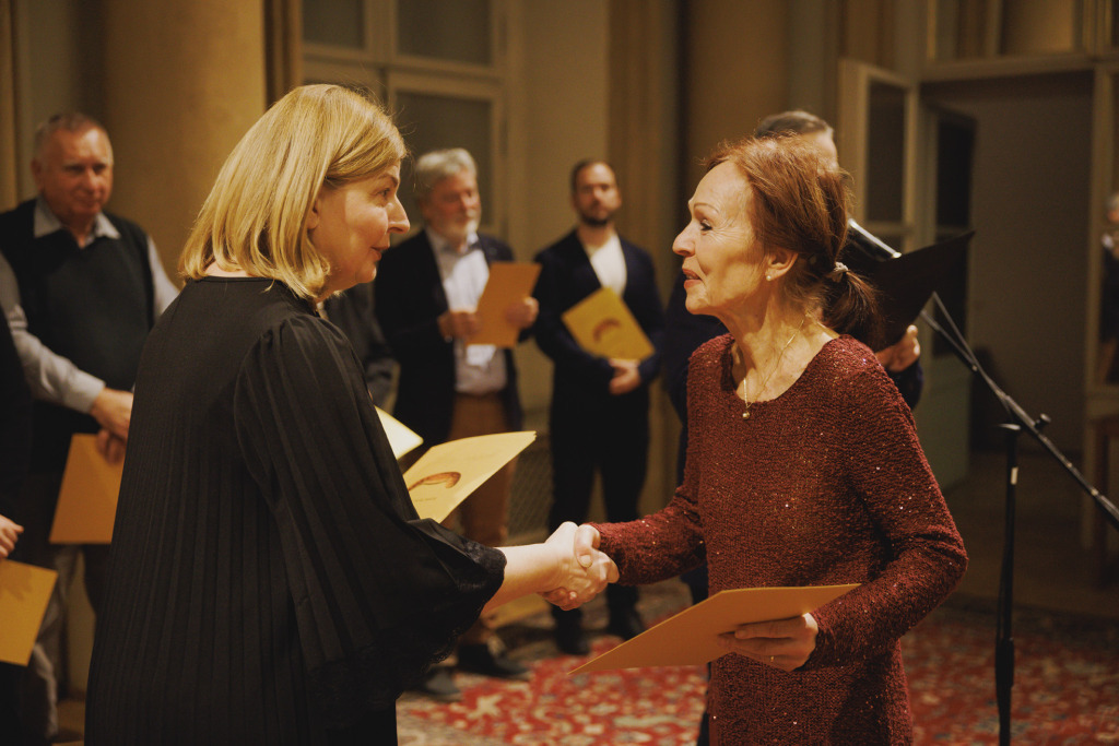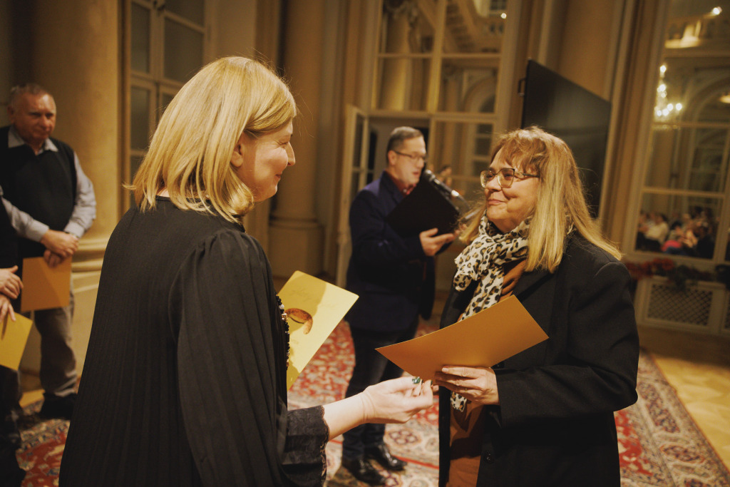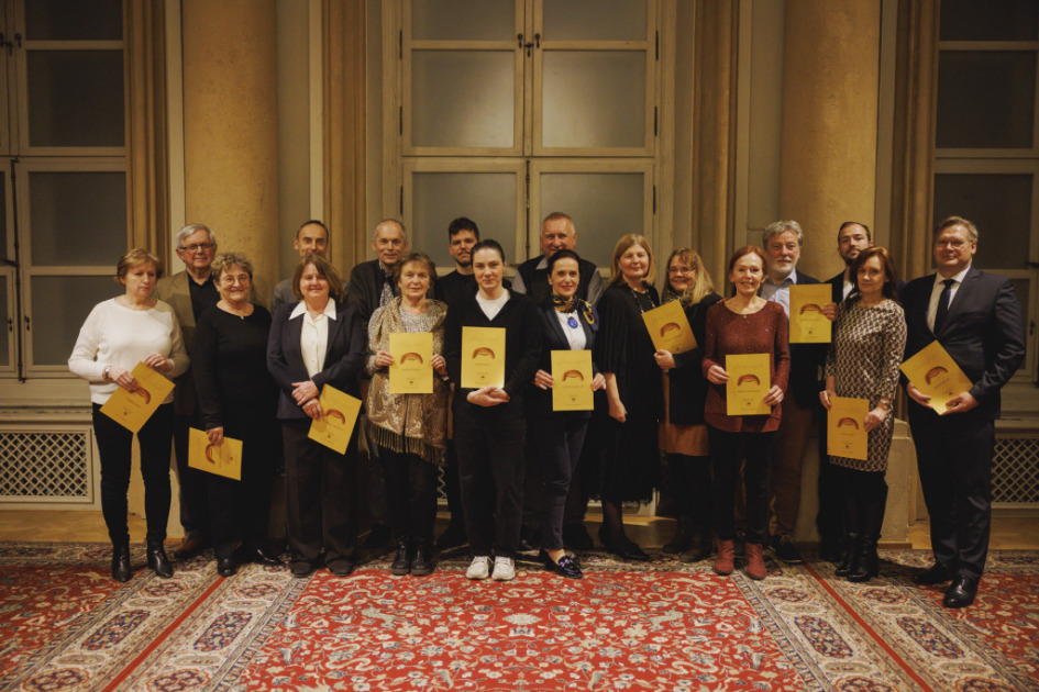 Nasledovalo odovzdávanie ocenení Zlatý rožok. Z rúk našej predsedníčky Evy Bolemant si prevzalo diplom niekoľko desiatok osobností, ktoré v roku 2024 pri našom združení nezištne stáli a pomáhali mu.