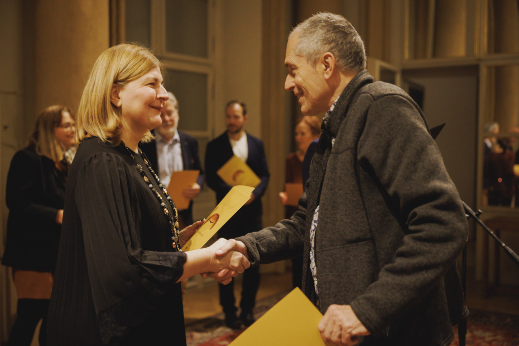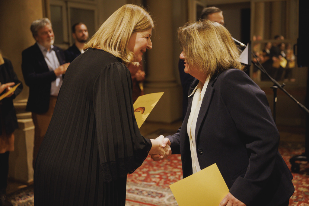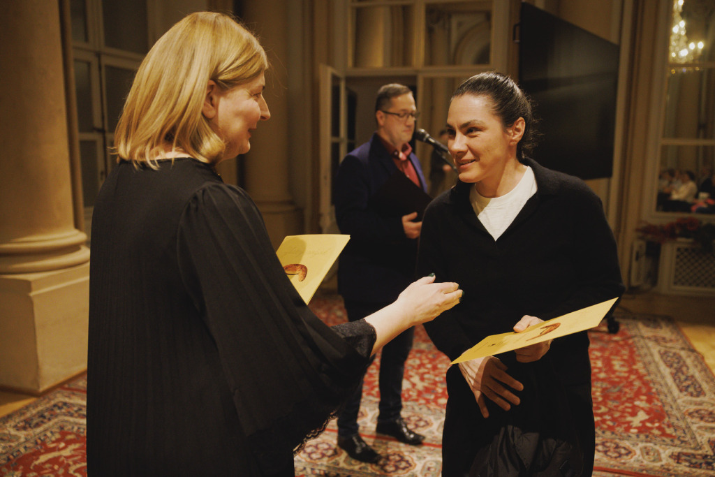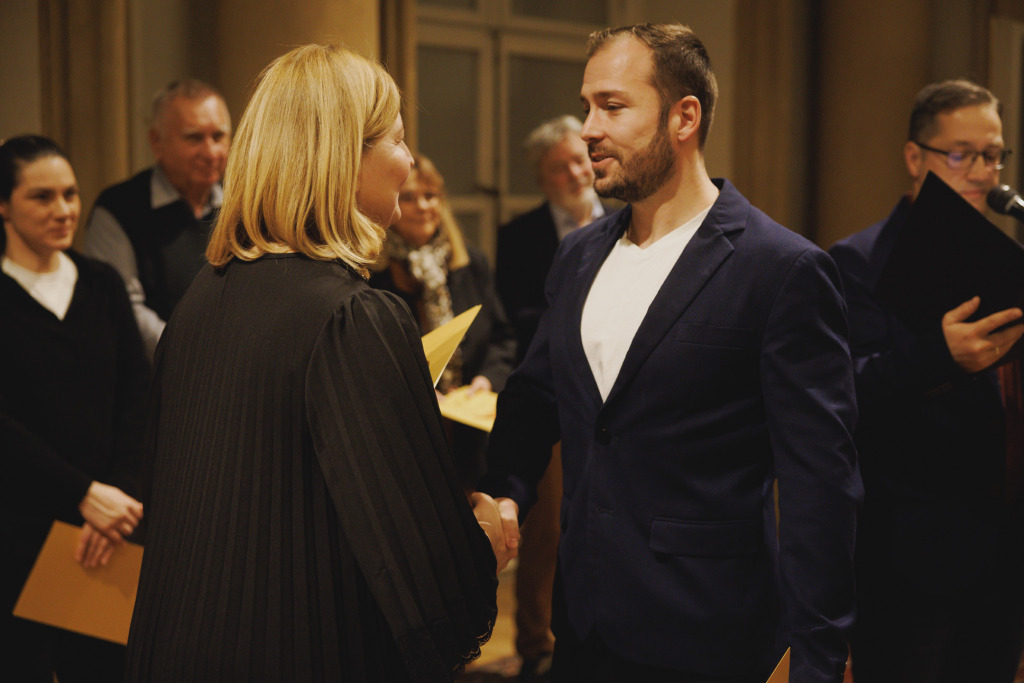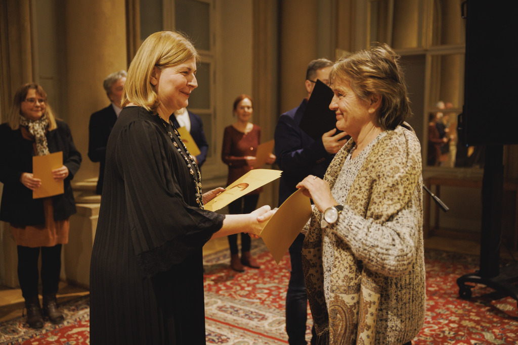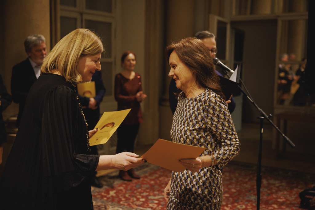 Nasledovalo odovzdávanie ocenení Zlatý rožok. Z rúk našej predsedníčky Evy Bolemant si prevzalo diplom niekoľko desiatok osobností, ktoré v roku 2024 pri našom združení nezištne stáli a pomáhali mu.