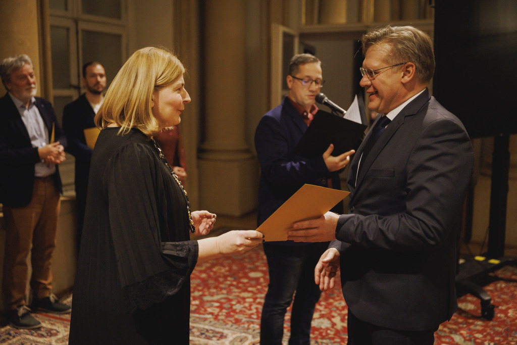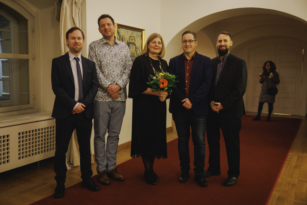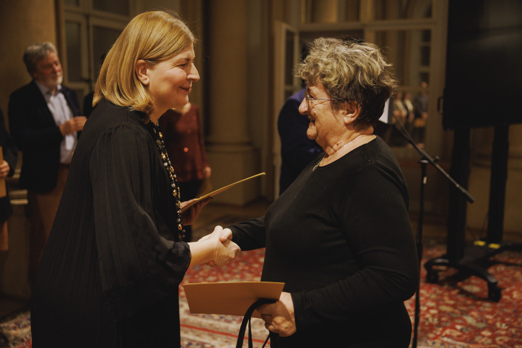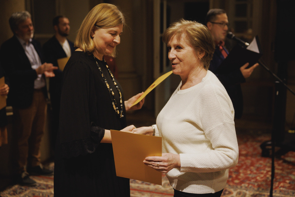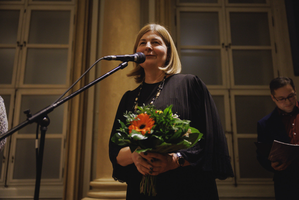 Eva Bolemant bola za svoju neúnavnú prácu odmenená kyticou od spoluzakladateľa združenia Sándora Pappa ml.