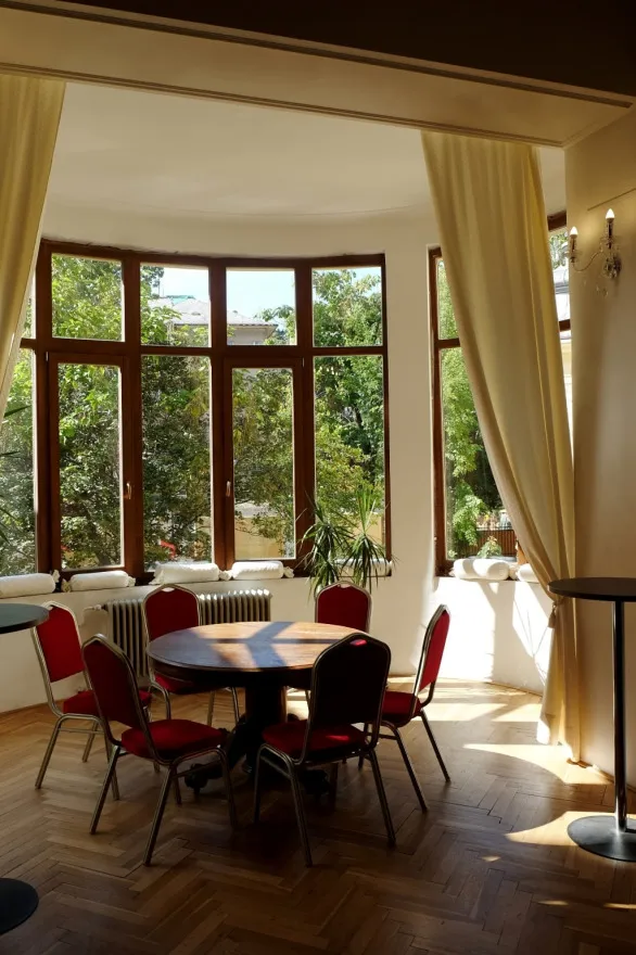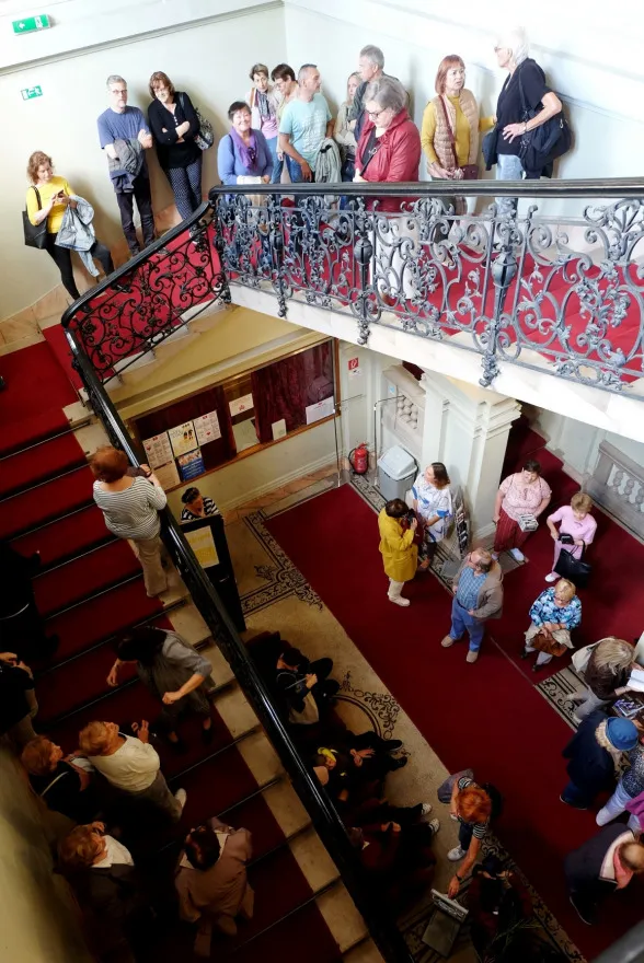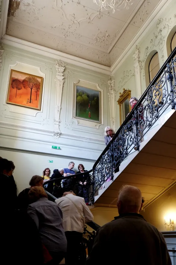 Toto veľké množstvo ľudí neprilákal palác samotný, ale zaujímavá prednáška dr. Štefana Holčíka, ktorý nám s nadšením jemu vlastným porozprával o lekárnikovi Felixovi Pisztorym, jeho manželke Ide a najmä o histórii paláca. Previedol nás výstavnými priestormi tejto nádhernej eklektickej budovy. Dozvedeli sme sa mnoho zaujímavých informácií nielen o výjavoch na freskách a štukovej výzdobe, ktoré boli mnoho rokov ukryté pred zrakmi návštevníkov.