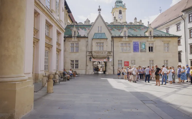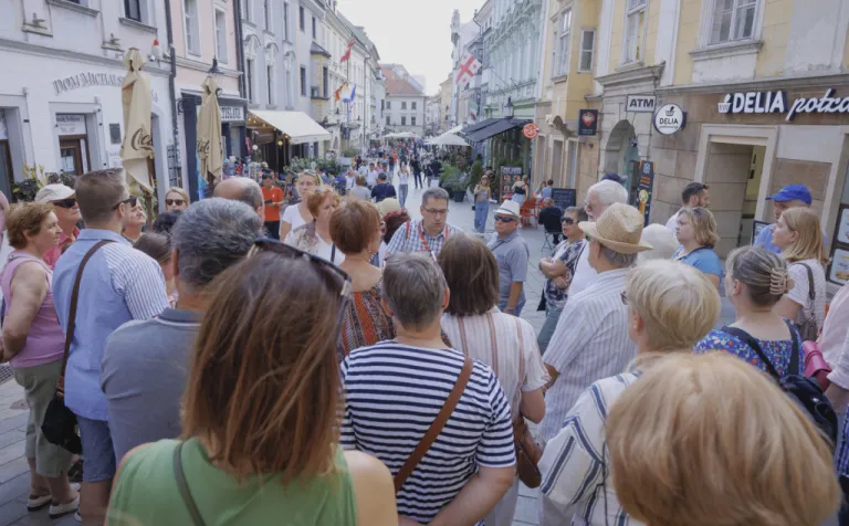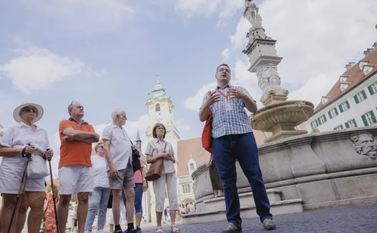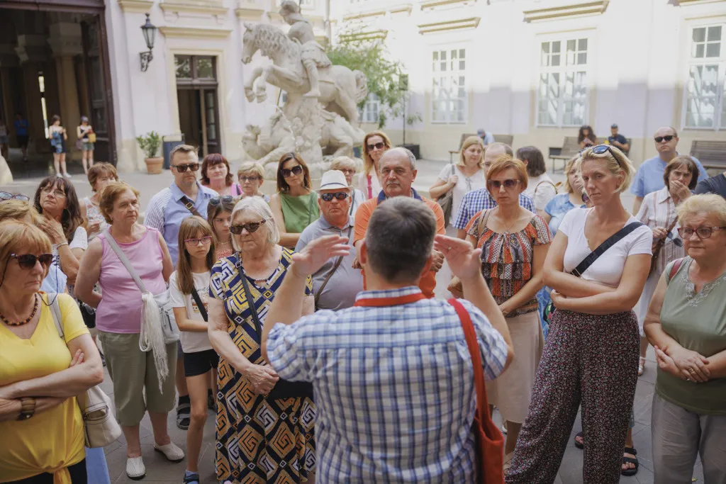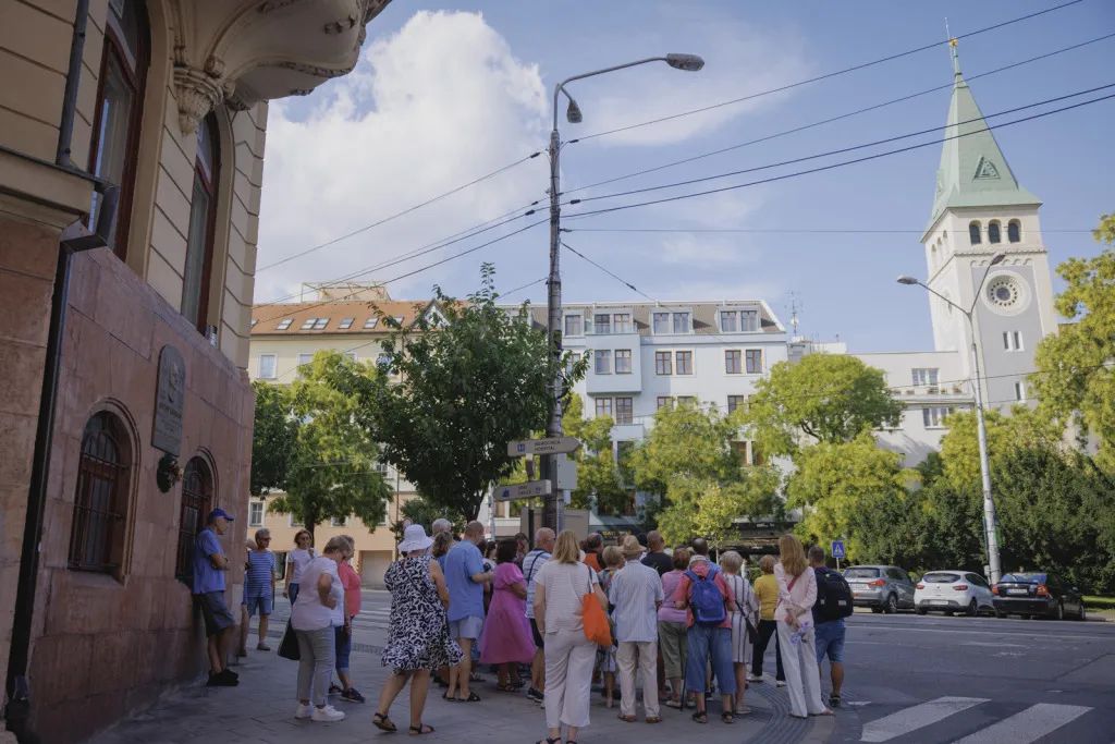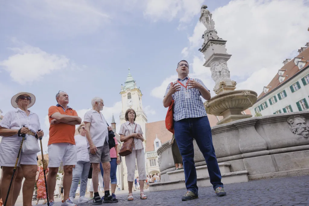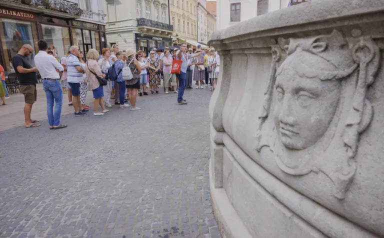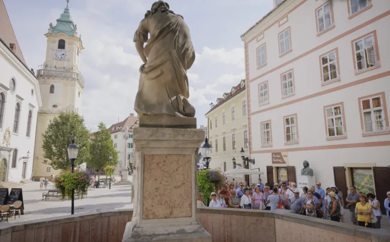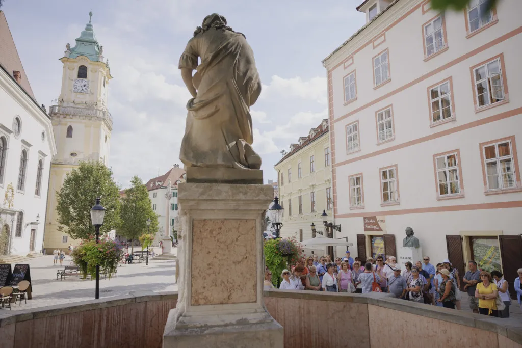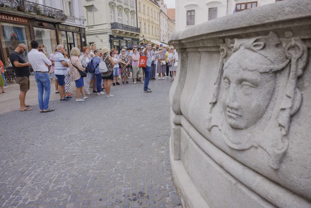 Počas obsažnej prechádzky sme zároveň spoznali anekdoty spojené s Hlavným námestím, tajomstvá sôch zdobiacich priečelie Primaciálneho paláca či fontány sv. Juraja na jeho nádvorí, dozvedeli sme sa však aj to, čo symbolizuje socha nymfy s krčahom v ruke a kto bola odvážna žena, ktorá v roku 1942 pomohla ujsť židovským obyvateľom do Maďarska.