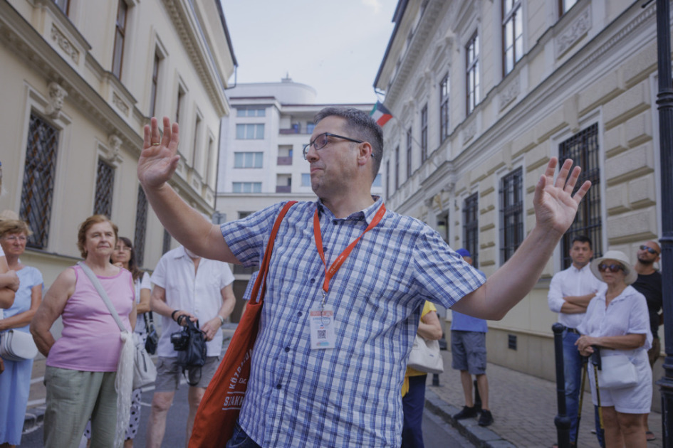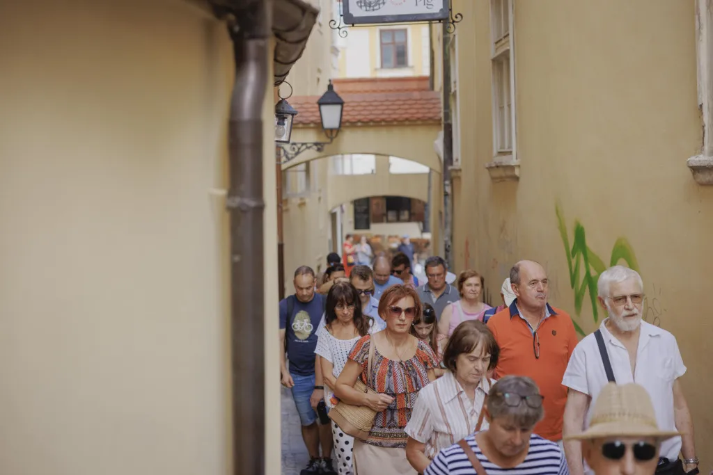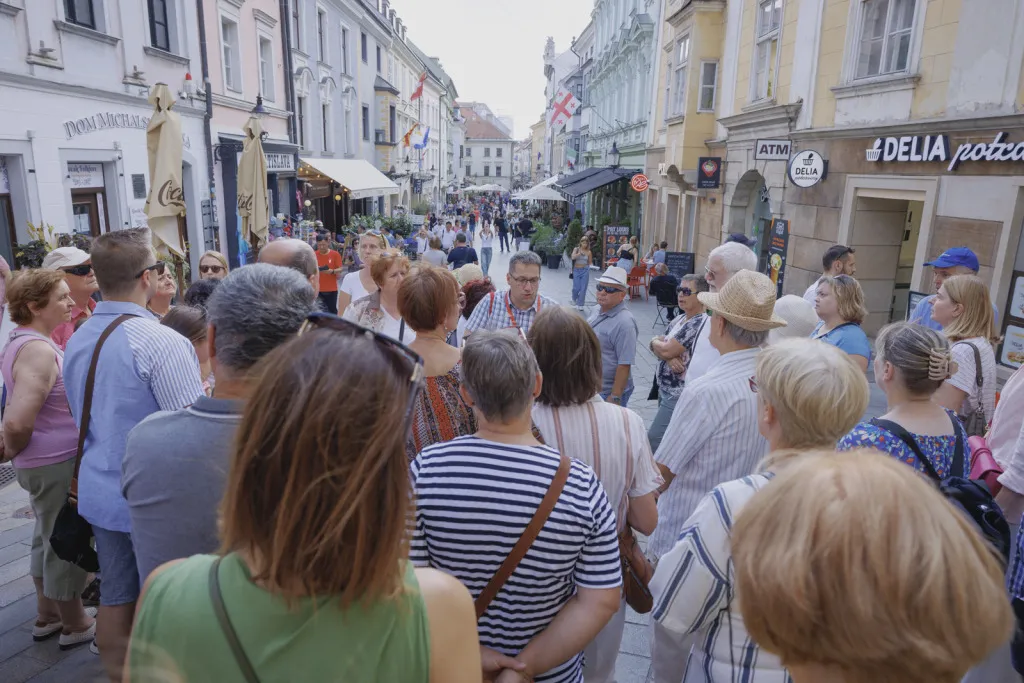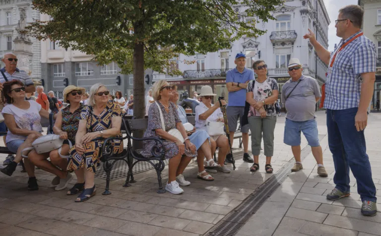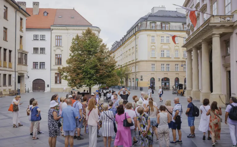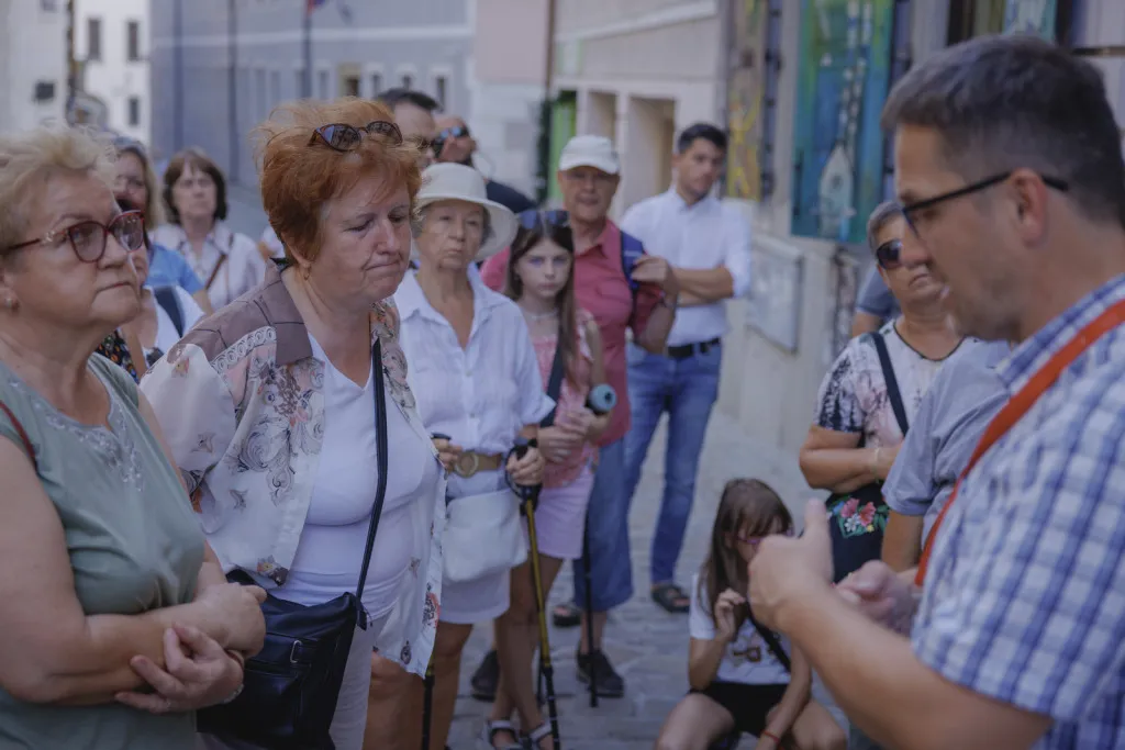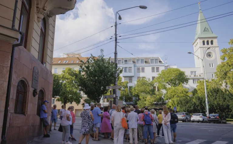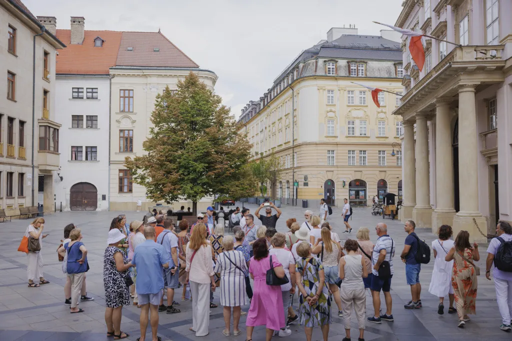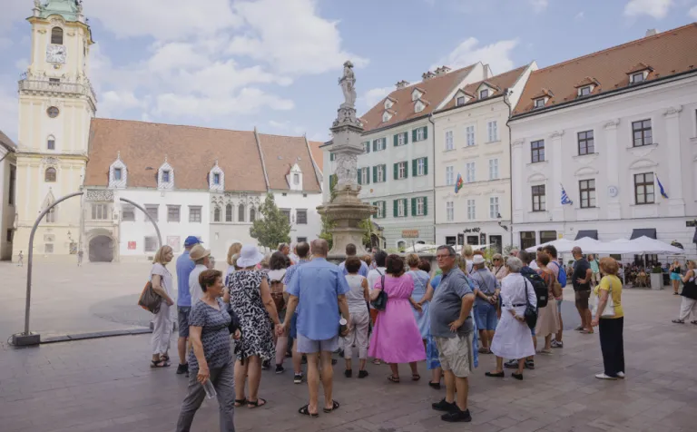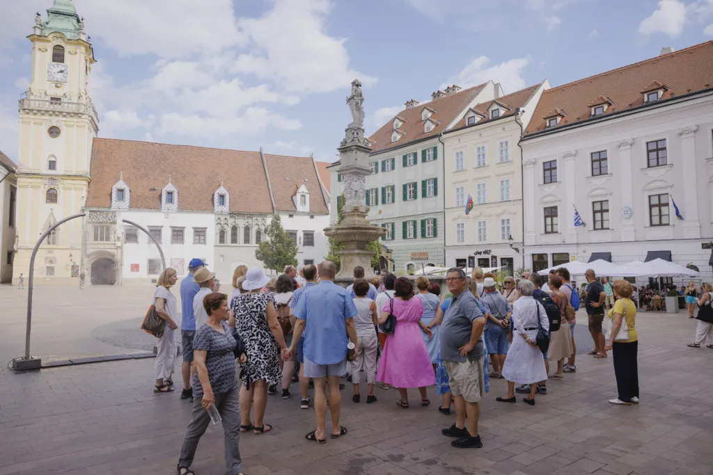 Počas obsažnej prechádzky sme zároveň spoznali anekdoty spojené s Hlavným námestím, tajomstvá sôch zdobiacich priečelie Primaciálneho paláca či fontány sv. Juraja na jeho nádvorí, dozvedeli sme sa však aj to, čo symbolizuje socha nymfy s krčahom v ruke a kto bola odvážna žena, ktorá v roku 1942 pomohla ujsť židovským obyvateľom do Maďarska.