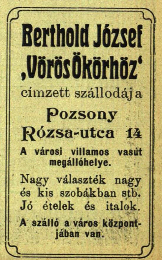 Jozef Berthold – hotel „U červeného vola“ v centre mesta