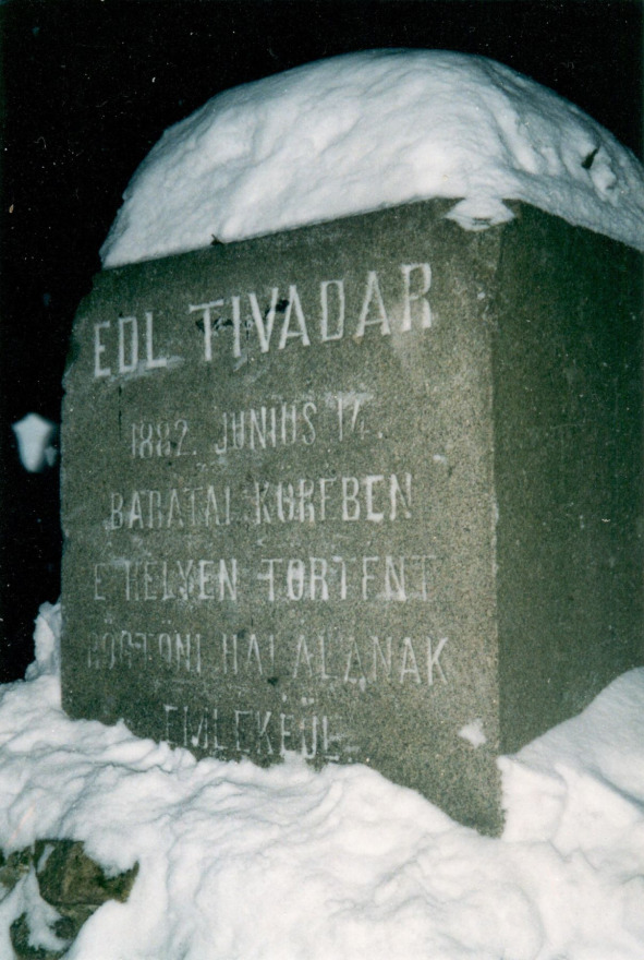 Zimný pohľad na pamätník – fotografia Magdi, dcéry Lászlóa Berthu; 2002 (Archív autorky)