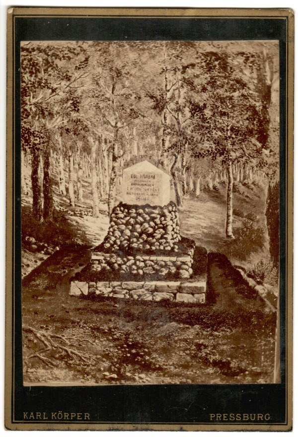 Prvú známu fotografiu pamätníka zhotovil fotograf Karl Körper pravdepodobne v deväťdesiatych rokoch 19. storočia. Vo svojom albume ju uchovala naša prababka Irma, dcéra Theodora Edla. (Archív autorky)