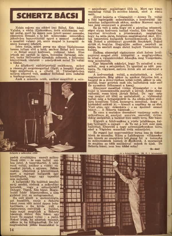 Cikk Scherz Edéről a Rádióélet című újságban.