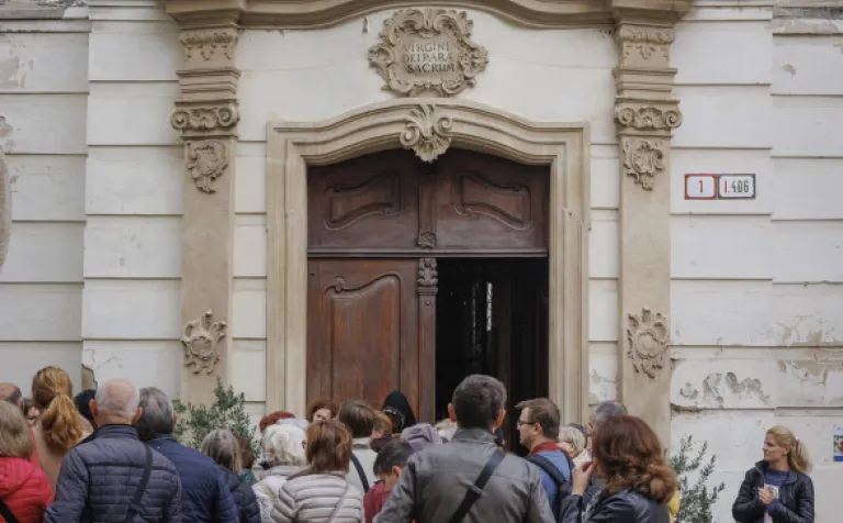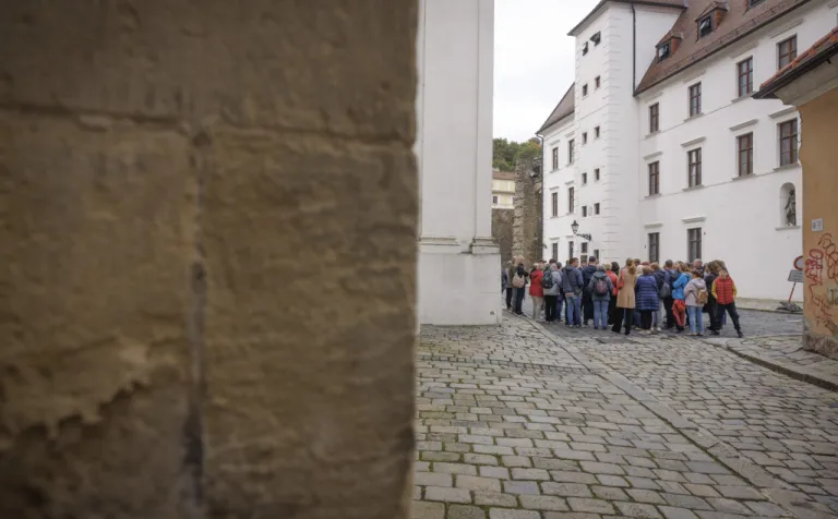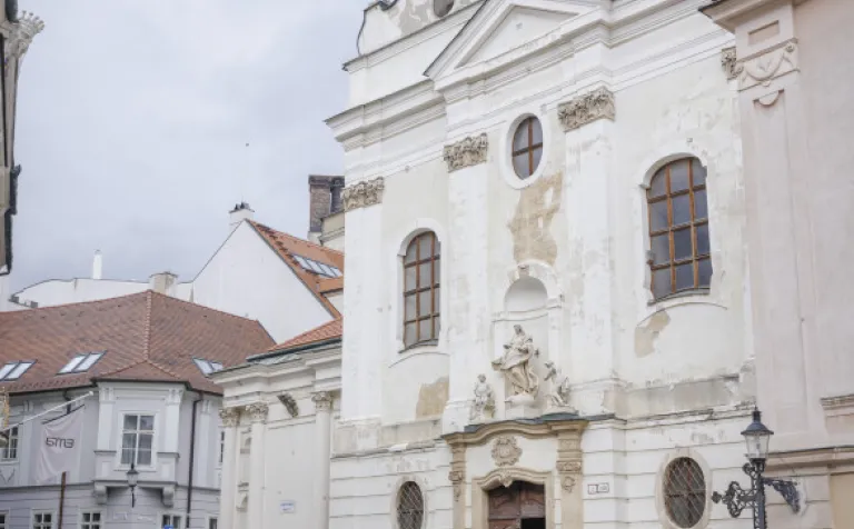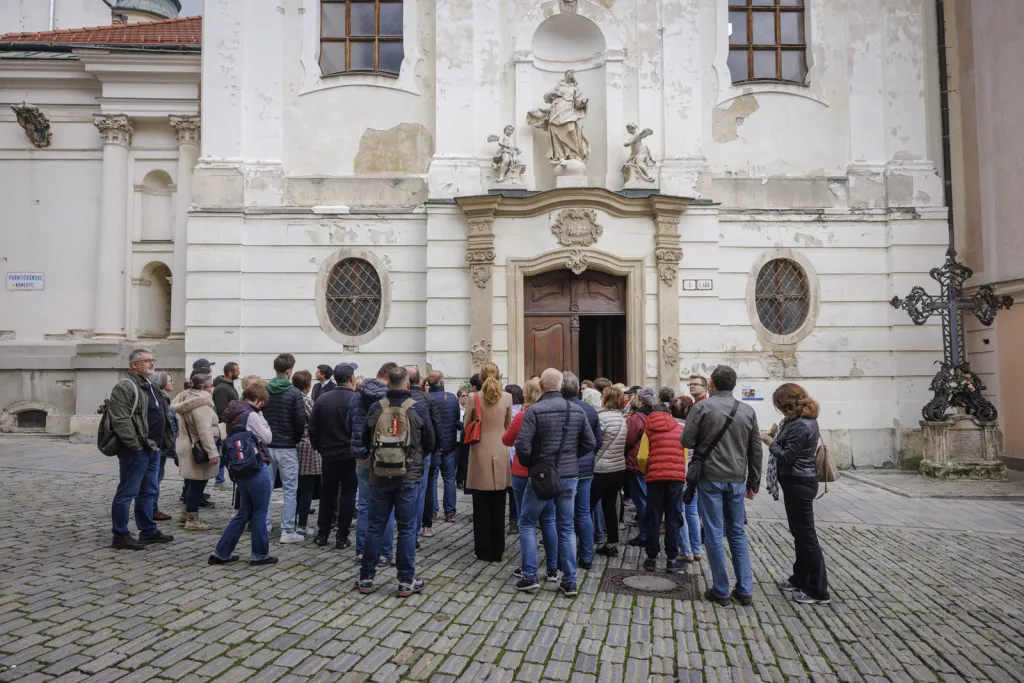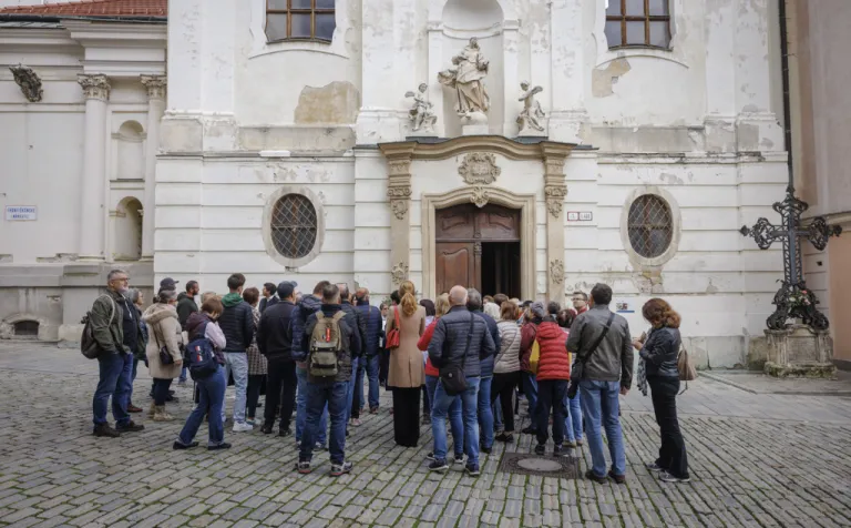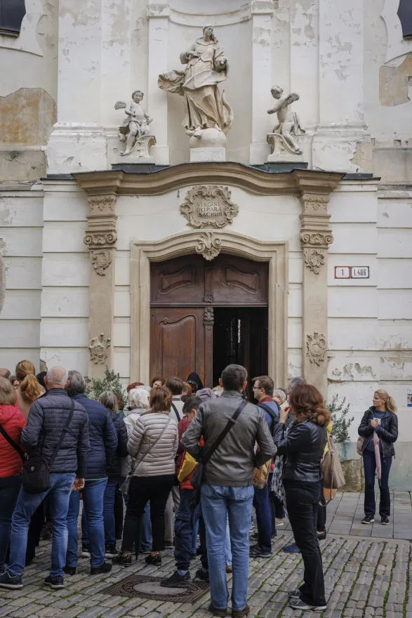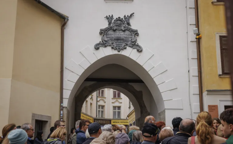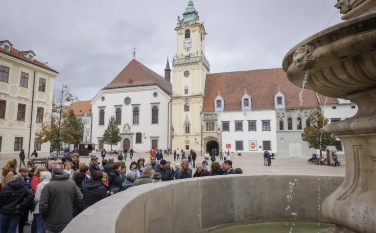 Následne sme absolvovali trasu pôvodného korunovačného sprievodu cez Kapitulskú, Ventúrsku a Sedlársku ulicu na Hlavné námestie, kde sme si pozreli fontánu zachytávajúcu kráľa Maximiliána I., prvého panovníka korunovaného v Prešporku. Prechádzku sme ukončili pred Kostolom Milosrdných bratov, kde sme si pripomenuli aj poslednú zastávku tohto historického obradu – niekdajší korunovačný pahorok, ktorý sa nachádzal pri Dunaji.