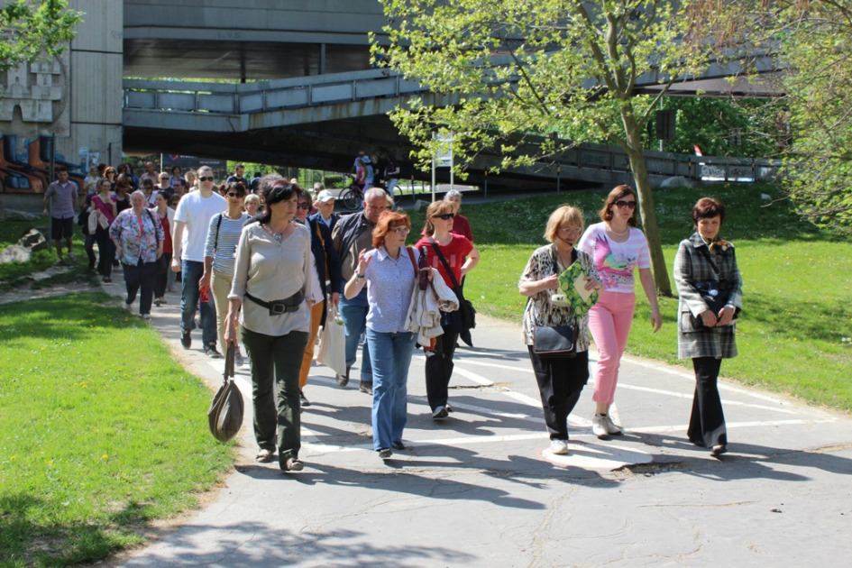 Sprevádzala nás Ing. Vierka Jančušková, ktorá aj tentoraz ponúkla rokmi overenú kvalitu. Ukázala nám nielen niekoľko vzácnych stromov, ale aj iné zaujímavé relikty histórie, najmä rad pamätníkov, ktorými sú sad a priľahlé nábrežie posiate.