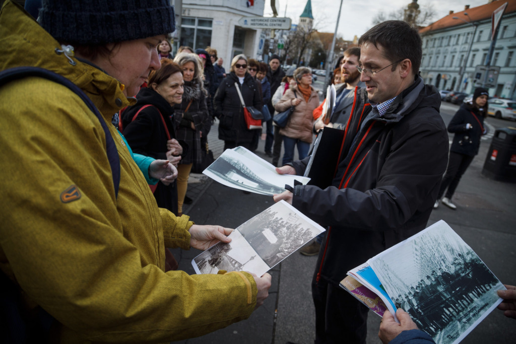Vlastivedný sprievodca M_P_BA Ivor Švihran a podpredseda OZ Bratislavské rožky, sprievodca Árpád Korpás porozprávali prítomným o udalostiach, ktoré viedli k pripojeniu Bratislavy k Československej republike a k tomu, že mesto sa pod názvom Bratislava stalo hlavným mestom slovenskej časti spoločného štátu. Priblížili aj postoj dobovej bratislavskej verejnosti k týmto udalostiam.
