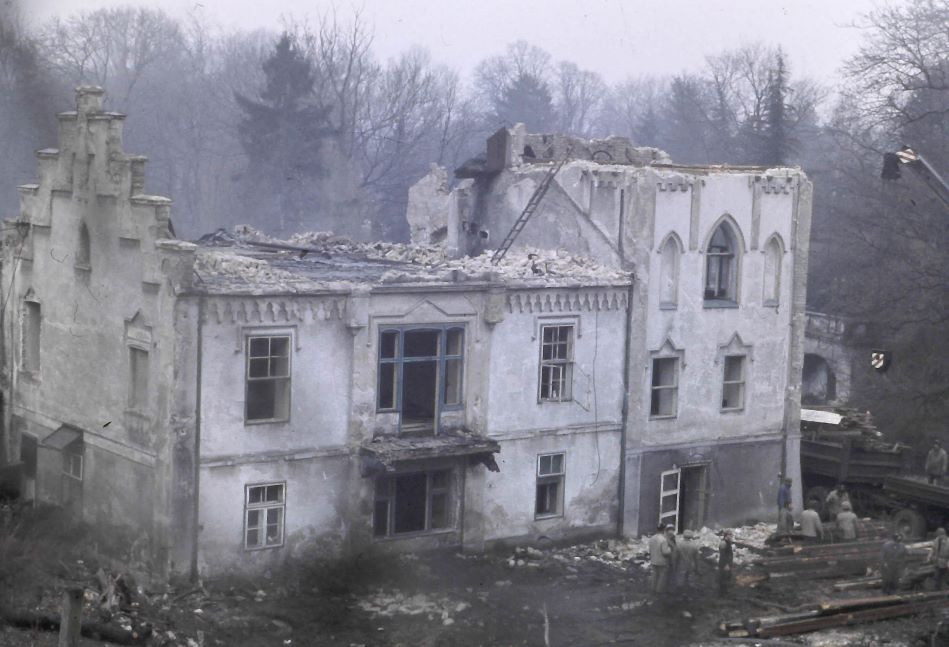 Asanácia Lanfranconiho vily v apríli 1986 (pohľad zo severnej strany). V pozadí za vilou vidieť klenbu vínnej pivnice. Foto: autorka