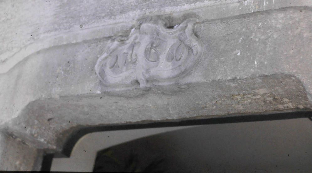 Portál nad vchodom do vily s datovaním 1766 a iniciálkami BB. Foto: autorka