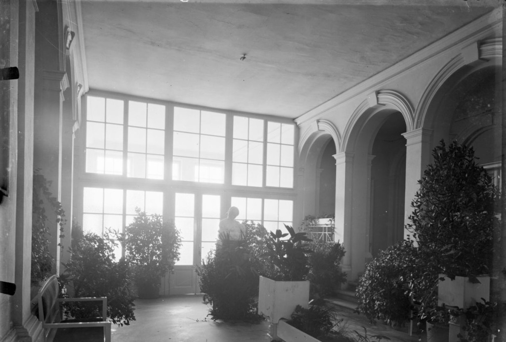Vestibul vily Lanfranconi v Botanickej záhrade, uvádza sa rok 1943. Pohľad z pravej strany schodiska. Foto: Archív Pamiatkového úradu SR, N 15411