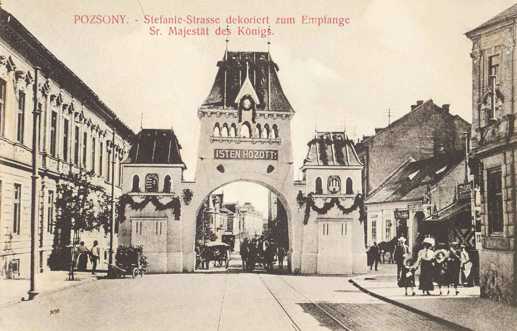 Prešporok viackrát navštívil aj cisár a kráľ František Jozef I. Počas návštevy 1. júna 1908 obyvatelia mesta očakávali panovníka, ktorý pricestoval vlakom, so slávobránou a s nápisom „Buď vítaný!“. Slávobránu postavili v blízkosti hotela „Pri železnici“ na Štefániinej triede.