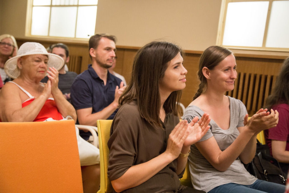 Dr. Peter Buday, spoluator knihy Storočie Feiglerovcov, obohatil svoje pútavé slová aj o veľmi hodnotný obrazový materiál. O tom, že si Bratislavčania cenia týchto umelcov, svedčí aj ich hojná účasť na prednáške.