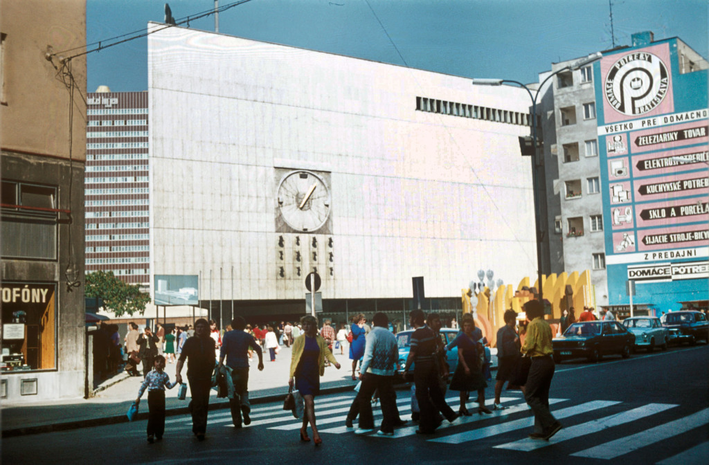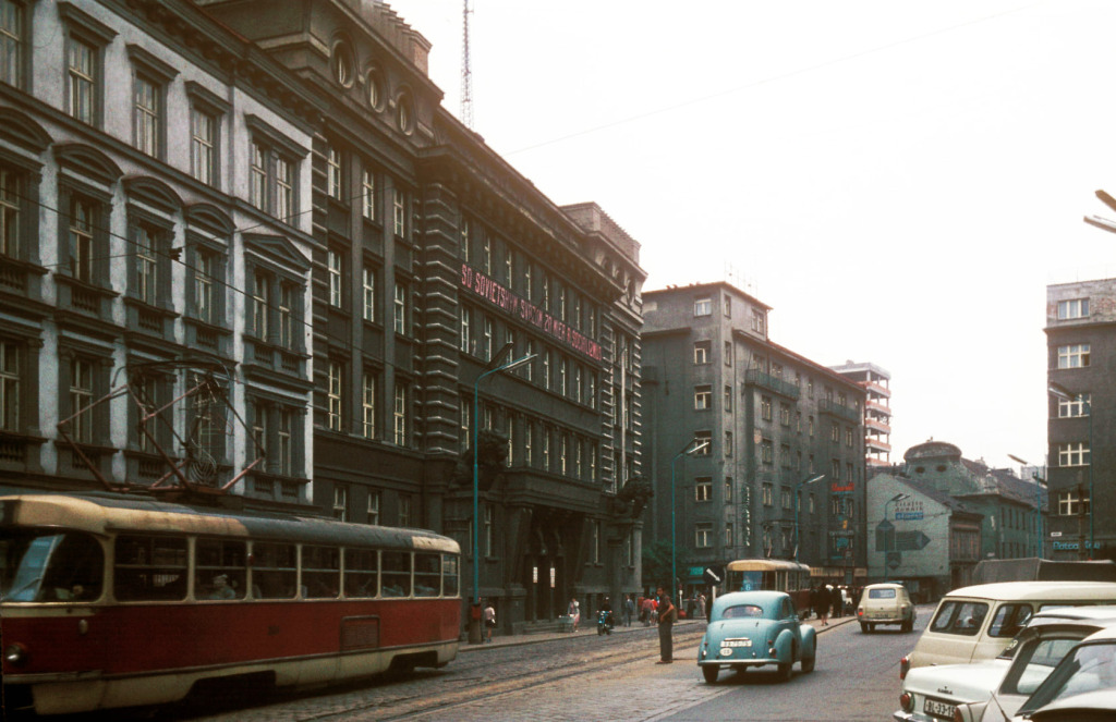 Prior v 70-tych rokoch, v časoch najväčšej slávy; v pozadí Hotel Kyjev. Zaujímavosťou fotografie je, že všetky zachytené budovy dodnes stoja.