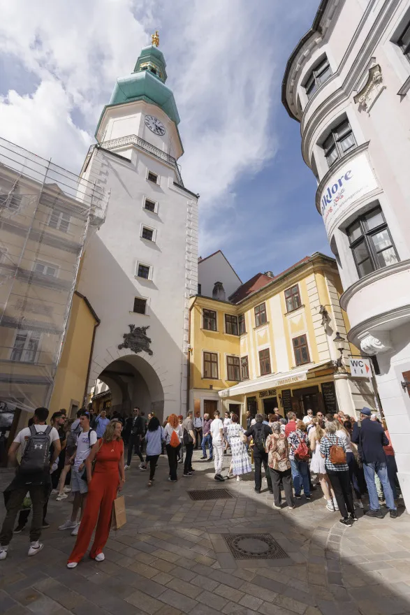 Hlavnú trasu prechádzky určovali štyri mestské brány. Najskôr sme sa pristavili na mieste niekdajšej Vydrickej brány, potom sme cez Promenádu zamierili k Rybárskej bráne, ktorej zvyšky sú aj dnes viditeľné pred budovou Slovenského národného divadla. Nasledovala Laurinská brána a nakoniec Michalská brána – jediná zachovaná a zrekonštruovaná mestská brána.