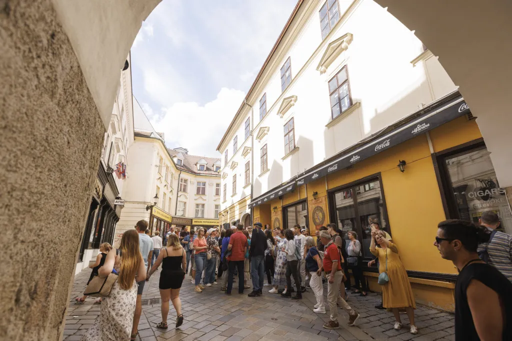 Približne šesťdesiat účastníkov sa vydalo na potulky spred Dómu sv. Martina, aby sa vrátilo do čias, keď ešte Bratislavu (dobový Prešporok) obkolesovali mestské hradby so štyrmi bránami. Turistický sprievodca a miestny historik István Hornyák nás previedol po zachovaných zvyškoch hradieb a predstavil nám nielen ich históriu a dôležitú funkciu, ktorú v minulosti plnili, ale umožnil nám nahliadnuť aj do života starých Prešporčanov.