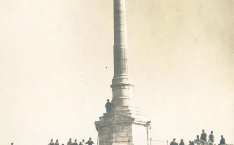 Dvadsaťjedenmetrový pieskovcový obelisk na devínskom hradnom vrchu, stojaci vo výške 212 metrov ...