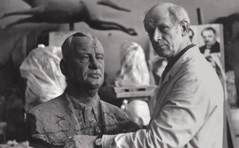 Alexander Trizuljak s bustou Ladislava Slováka. Zdroj: Alexander Trizuljak - Sochár - Sculptor Život ...