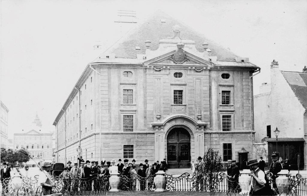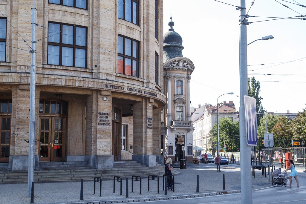 Komplex budov, na mieste ktorých dnes stojí univerzita, patril pôvodne Jánovi Pálffymu a bol známy ako Pálffyho majer. Po vzniku ČSR ho štát najskôr skonfiškoval, potom Pálffyovcom vrátil a tí ho predali Kablovke. Od nej ho v roku 1924 kúpilo ministerstvo obchodu a verejných prác, ktoré plánovalo postaviť na jeho mieste multifunkčný palác – sídlo plodinovej burzy či zemského archívu (projekt František Krupka). Majer bol zbúraný začiatkom roka 1930 a na ďalší rok sa začalo s výstavbou. Zlá situácia Univerzity Komenského (jej fakulty boli roztrúsené v rôznych starších domoch) spôsobila, že sa jej vedeniu v roku 1935 podarilo novostavbu získať a tá bola v marci 1937 napokon otvorená ako univerzitná budova.