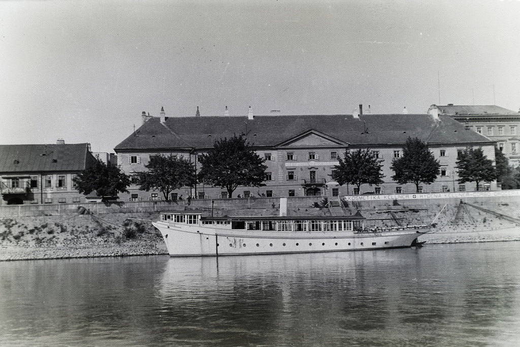 Vodné kasárne (nazvané podľa blízkeho Dunaja) boli postavené v rokoch 1759 – 63 ako uzavretá štvorkrídlová stavba s nádvorím určeným na výcvik vojakov. V určitých prípadoch boli využívané aj ako väznica (napr. počas napoleonských vojen), istý čas tu nedobrovoľne strávil aj slávny básnik Imre Madách. Po vzniku ČSR boli premenované na Štefánikove kasárne, po roku 1939 v nich krátko bývali vojaci slovenskej armády. V apríli 1940 pri rozširovaní vozovky zbúrali ich priečelie pri Dunaji, čím prepojili nádvorie s nábrežím. Určitý čas tam fungovala kaviareň Taranda. Po 2. svetovej vojne budovu pridelili Slovenskej národnej galérii, a tá prieluku zaplnila modernistickou prístavbou (projekt Vladimír Dedeček), ktorá bola odovzdaná do užívania v marci 1977.