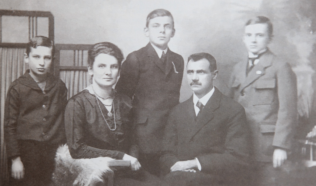 Rodina D. S. Jurkoviča. Zľava: syn Pavel, matka Božena, syn Juraj, otec Dušan a syn Ján. Zdroj: Rodinný archív Kataríny Salayovej