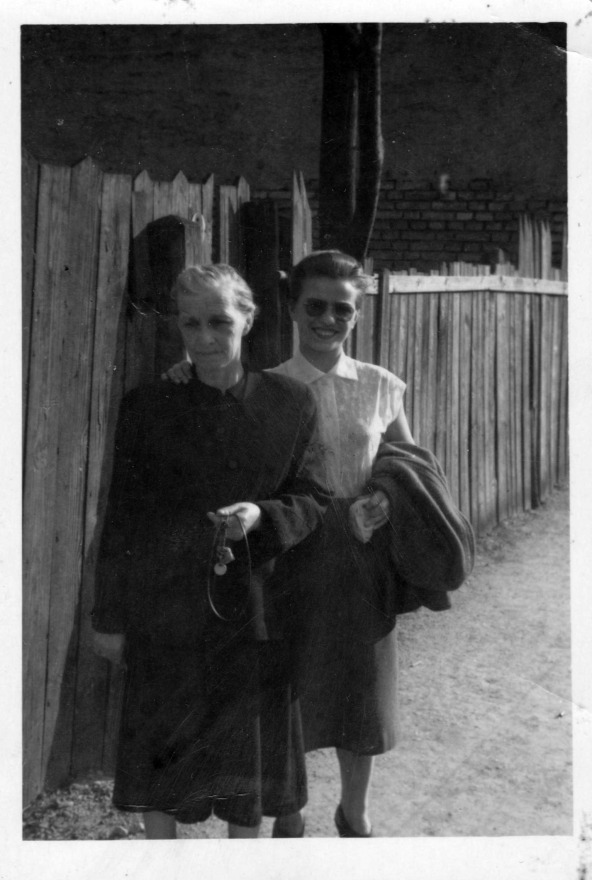Fotografia z roku 1957 zachytávajúca Katarínu so svojou mamou, pred domom v Petržalke, v ktorom žila až do svojej smrti v roku 1958.